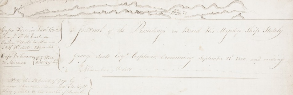 [Various places, including Saudi Arabia and Yemen, ca. 1796]. Small folio (ca. 19 x 30.5 cm. English manuscript on watermarked paper. With a loosely inserted manuscript map titled "A Chart shewing the Track of HMS Ship Myrtle" of the Bay of Biscay and Portugal, and a hand-coloured manuscript signal chart. Contemporary or slightly later half black morocco, marbled boards. 48 ll. Full description