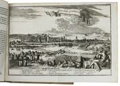 Paris, Clause Cramoisy, 1624. 2 parts in 1 volume. 4to. (22.6 x 16.4 cm). With the title page printed in red and black with woodcut vignette, 57 woodcut illustrations, of which 3 full-page, woodcut musical scores, head- and tailpieces, and initials. 19th-century elaborately blind-tooled black morocco, boards and spine showing an intricate motif of lions rampant within lozenges, with a red morocco title label lettered in gold on the spine, gold-tooled board edges and turn-ins, gold-tooled red morocco pastedowns, red edges, red silk on the first and last flyleaves. Bound by Cuyls (with CUYLS stamped in the upper outer corner of the verso of the first flyleaf). [4], 124, [8] pp. Full description