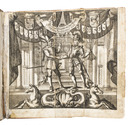 Haarlem, Adriaen Rooman, 1628. 2 parts in 1 volume. 4to. Ad 1: With an allegorical frontispiece, 16 engraved plates, and a printer's device on the final page, the text is printed in roman, gothic and civilité type. Ad 2: With a woodcut printers device on the title page, a full-page engraved portrait, and a full-page engraved plate of the first printing office in Haarlem. Contemporary gold- and blind-tooled overlapping vellum, gold-tooled oval coat of arms of Haarlem in the centre of both boards, surrounded by a blind-tooled single fillet frame, green closing ties, red sprinkled edges. [88], 520, [8]; 1-5, [3], 9, 6-124 pp. Full description