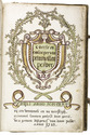 Antwerp, widow of Martinus Nutius, 1561. Small agenda 12mo (14 x 6.5 cm). With Nutius's woodcut device on the title-page. 17th-century(?) blind-tooled overlapping vellum, each board with the coat of arms of the Landgrave of Hesse, gilt edges. 165, [3 blank] ll. Full description