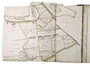 [Oostburg?], 1723. Royal folio (41 x 27.5 cm). With a hand-coloured title page, a large folding map of the dikes along the border of the polder, a large folding general map of the polder showing the numbered parcels at a scale of about 1:18,000, and 17 folding detail maps showing the individual plots within the parcels at a larger scale, all executed in brown ink and watercolours and tipped onto the fore-edges of 19 of the 144 numbered text leaves. Contemporary sheepskin parchment. 151 ll. (ll. 1 & 145-151 blank). Full description