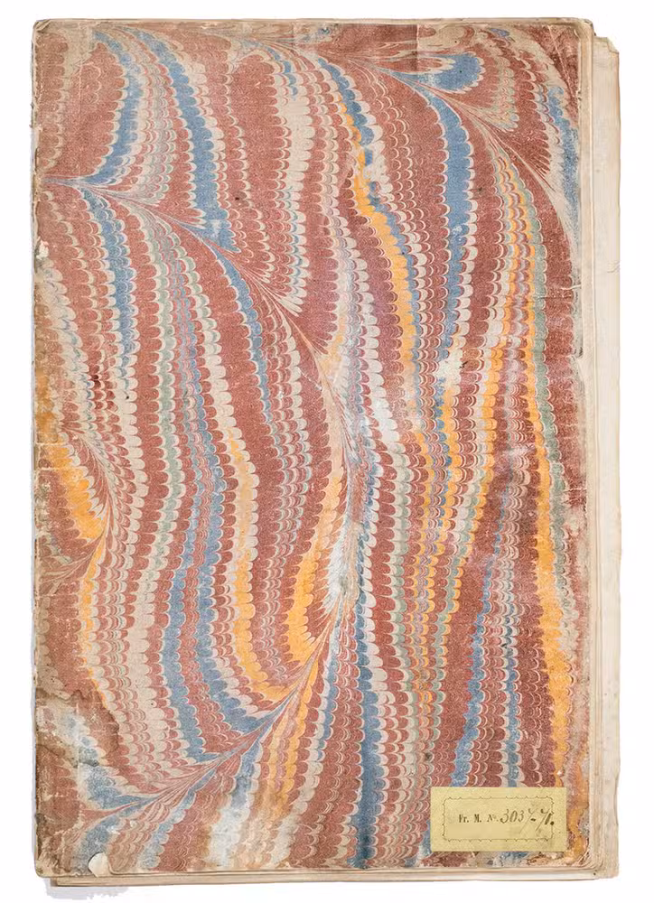 With 6 prints loosely inserted, 3 of them with a slightly tattered fore-edge, 1 also with a marginal tear along an old fold repaired with tape, and 1 bound print slightly browned, but still generally in very good condition. The spine of the marbled wrapper is mostly lost and the sides rubbed, with a few small and minor tears and stains, but the binding structure remains sound. One of the best and most extensive copies of an extremely rare and important popular satirical print series from the War of the Spanish Succession. Atlas van Stolk 3182; Brunet I, pp. 194-195; Cohen, col. 28; KVK & WorldCat (3 copies); Muller, Historieplaten 3038-3071.