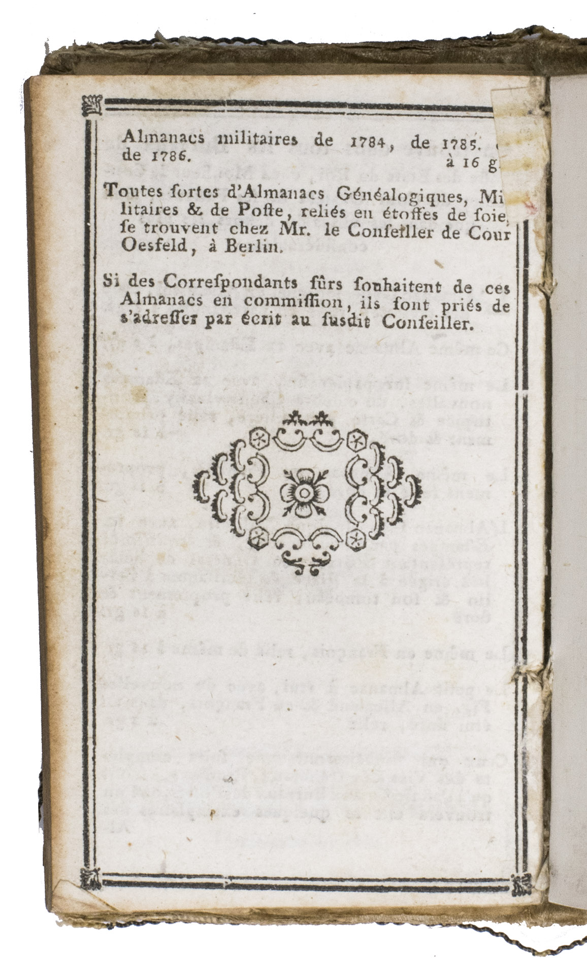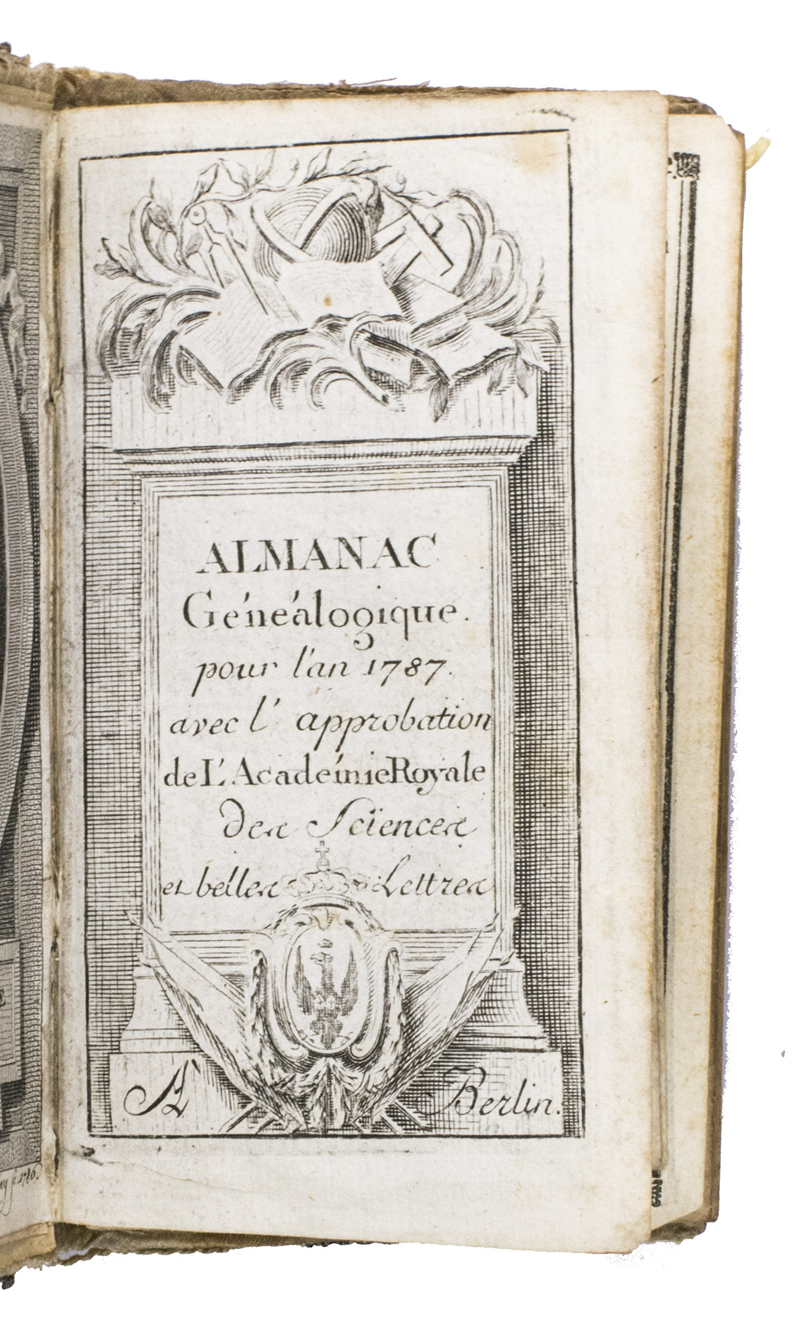Almanac généalogique pour lan 1787 avec lapprobation de lAcadémie Royale des sciences et belles lettres à Berlin.
