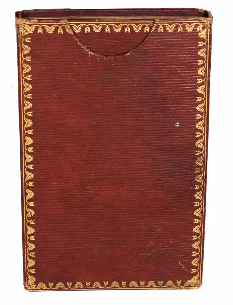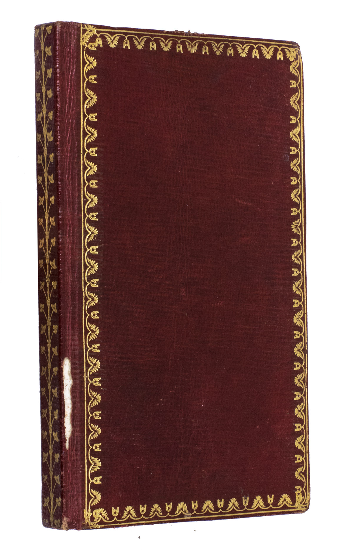 Paris, chez Janet, [1815]. 2 parts in 1 volume. 16mo. With an engraved title for both parts, and 6 fine stipple-engraved plates by Massol after designs by Sébastian Le Roy, protected by tissue paper guards. Contemporary gold-tooled dark red paper, imitating straight-grained morocco, with a vine on the spine and an ornamental border on both boards, gilt edges. Housed in a matching slipcase. 48, [36] pp.