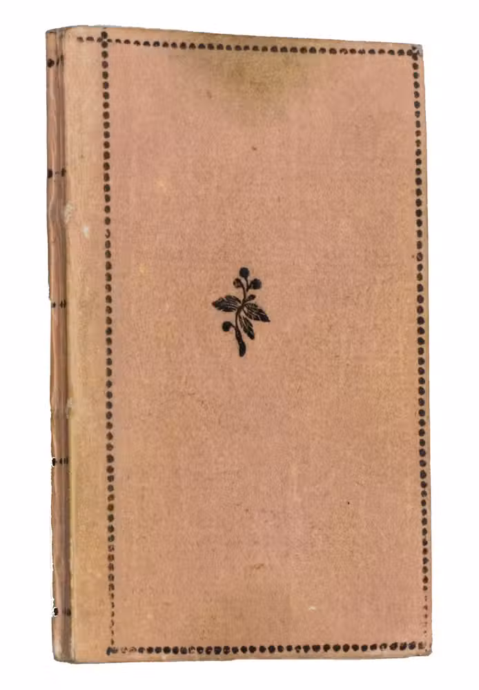 Offenbach, C.L. Brede, [1804]. 32mo. With an engraved frontispiece, an engraved title with a vignette, and 8 full-page numbered engraved plates by Neubauer. Contemporary pink boards tooled in black, with a floral ornament in the centre of both boards, surrounded by a dotted frame, paste paper pastedowns. The work is housed in a brown decorative paper slipcase. [18], 37, [1] pp.