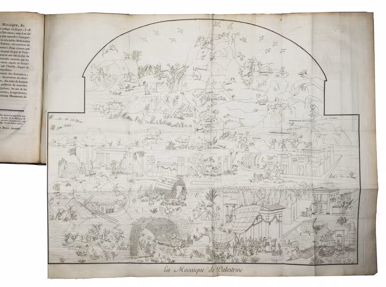 (5) BARTHÉLEMY, Jean-Jacques. Explication de la mosaïque de Palestrine. Paris, H.L. Guerin & L.F. Delatour, 1760.