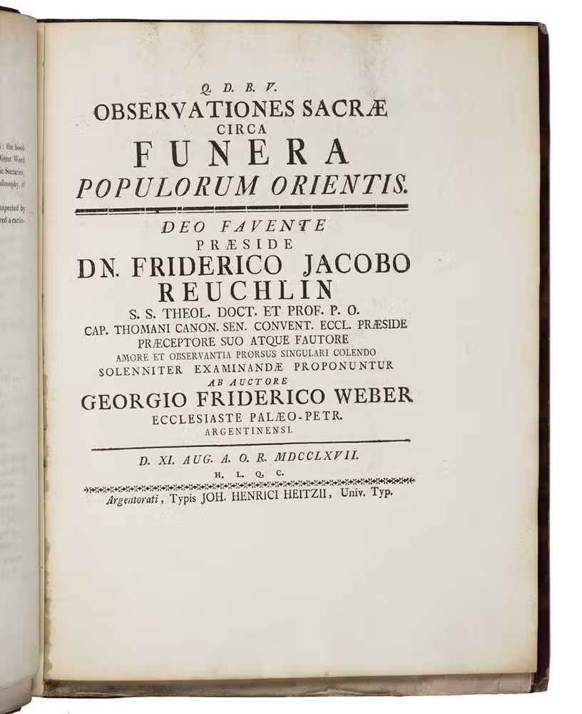 (2) WEBER, Georg Friedrich. Observationes sacrae circa funera populorum orientis. ...