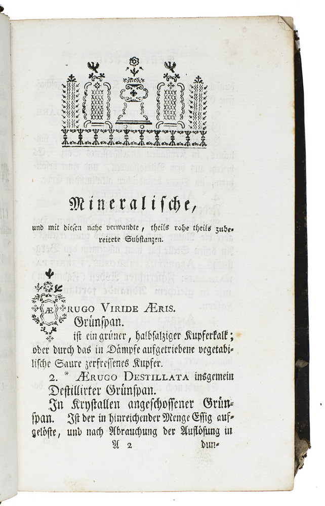 First edition of the German version of the Pharmacopoeia Austriaco-Provincialis, first published in 1774. Many editions of both, the original Latin and German translation followed.