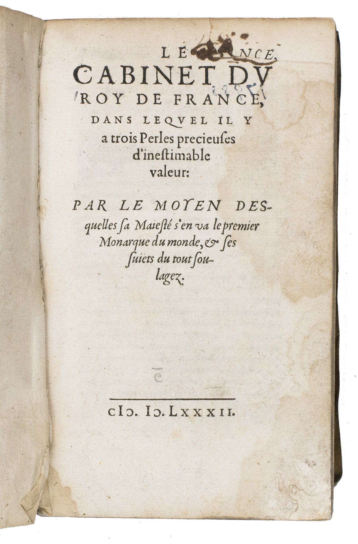 Bound after: (2) [Nicolas BARNAUD], Le cabinet du Roy de France, dans lequel il y a trois perles precieuses d'inestimable valeur: par le moyen desquelles sa maiesté s'en va le premier monarque du monde, et ses suiets du tout soulagez.