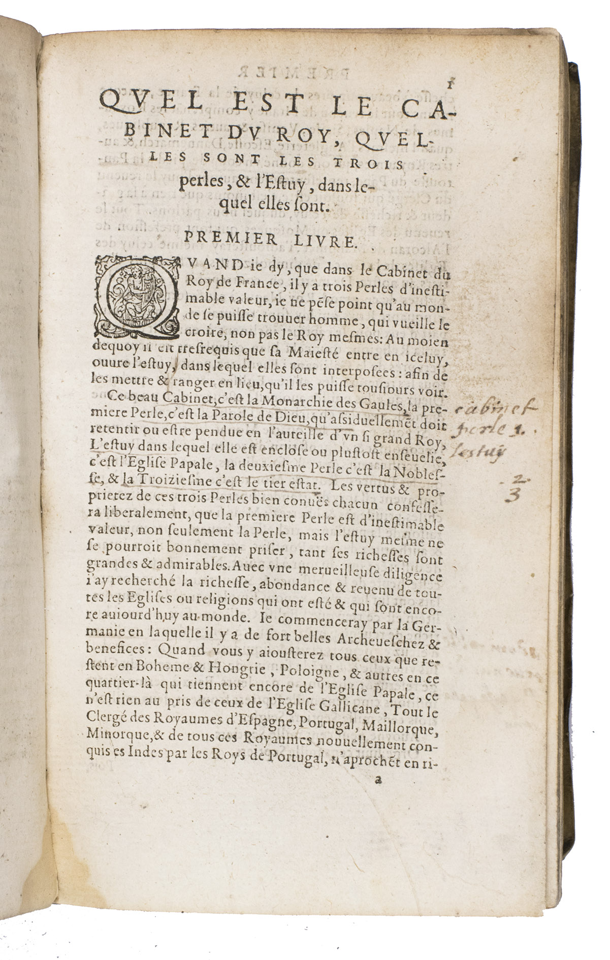 Ad 2: Le Cabinet du Roy de France is one of the most forceful and controversial political texts of the French Wars of Religion (1562-1598). Published anonymously and dedicated to King Henry III, it presents itself as a work of counsel, structured around the metaphor of three "precious pearls" by which the monarch might restore the kingdom and relieve his subjects.
