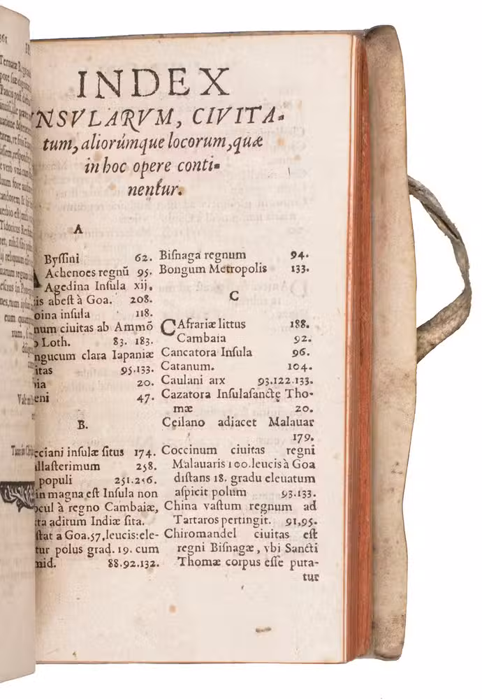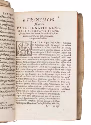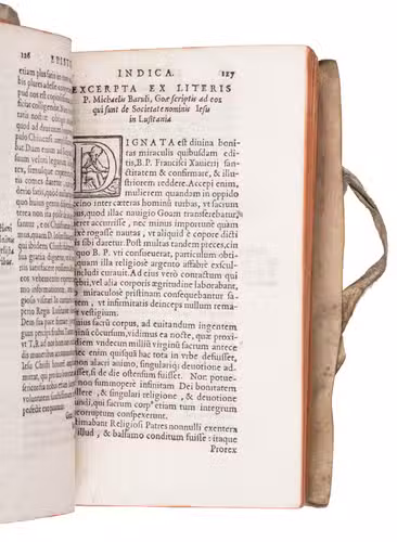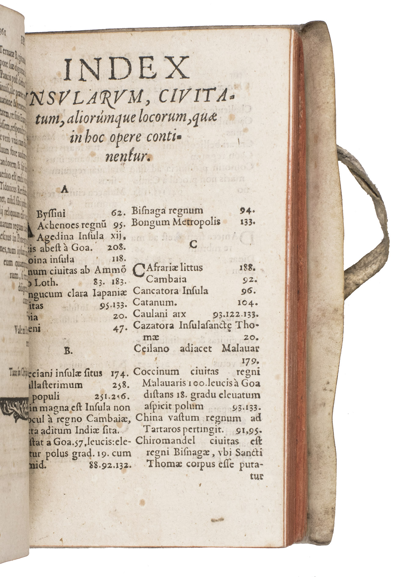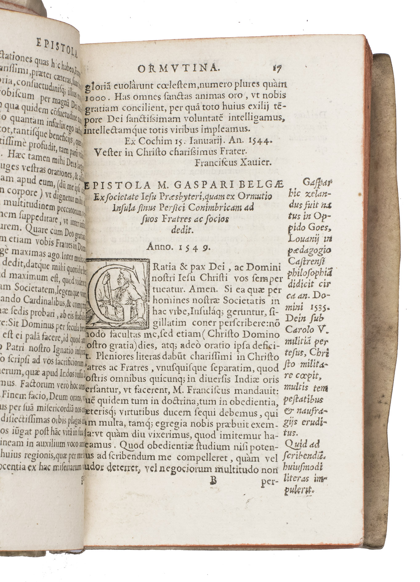 Ad 1: Third edition of a collection of 19 letters from missionaries in the East, mostly the East Indies but also including letters from Gaspar Berse from Hormuz Island, mentioning the islands religion, customs, and noting that the island is especially known for its trade - during the trading season you could find people from all over the world. Beside four letters by Gaspar Berse, the volume also includes letters from: Franciscus Xavier (1), Henricus Henriquez (2), Antonius Quadrus (2), Michael Barulus (1), Arius Bandonius (1), Ludovicus Frois (3), Emanuel Tesceira (1), Joannes Meschita (2), Jacobus Navarchus (1) and Joannes Berra (1). They mainly concern India and the mission on the Indian coasts, containing invaluable information on the activities of the Jesuits in the region.