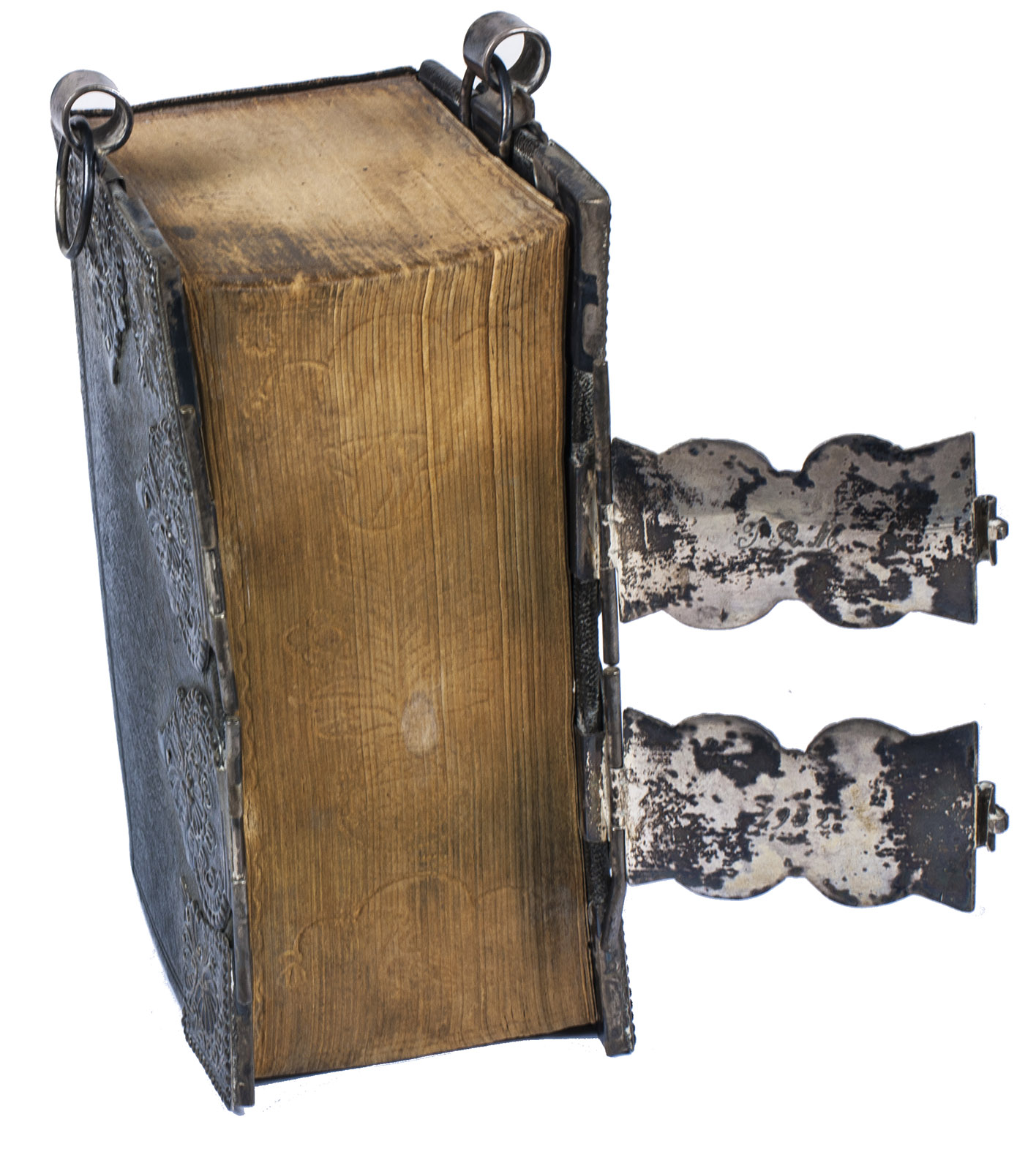 Binding a little worn (especially around the spine, edges and cornerpieces) the rings with some light wear, paper edges a little soiled, some soiling from the silver-plating on the endpapers. In good condition. Nederlandse Bijbels en hun uitgevers, 1477-1952 (1952), pp. 16-20.