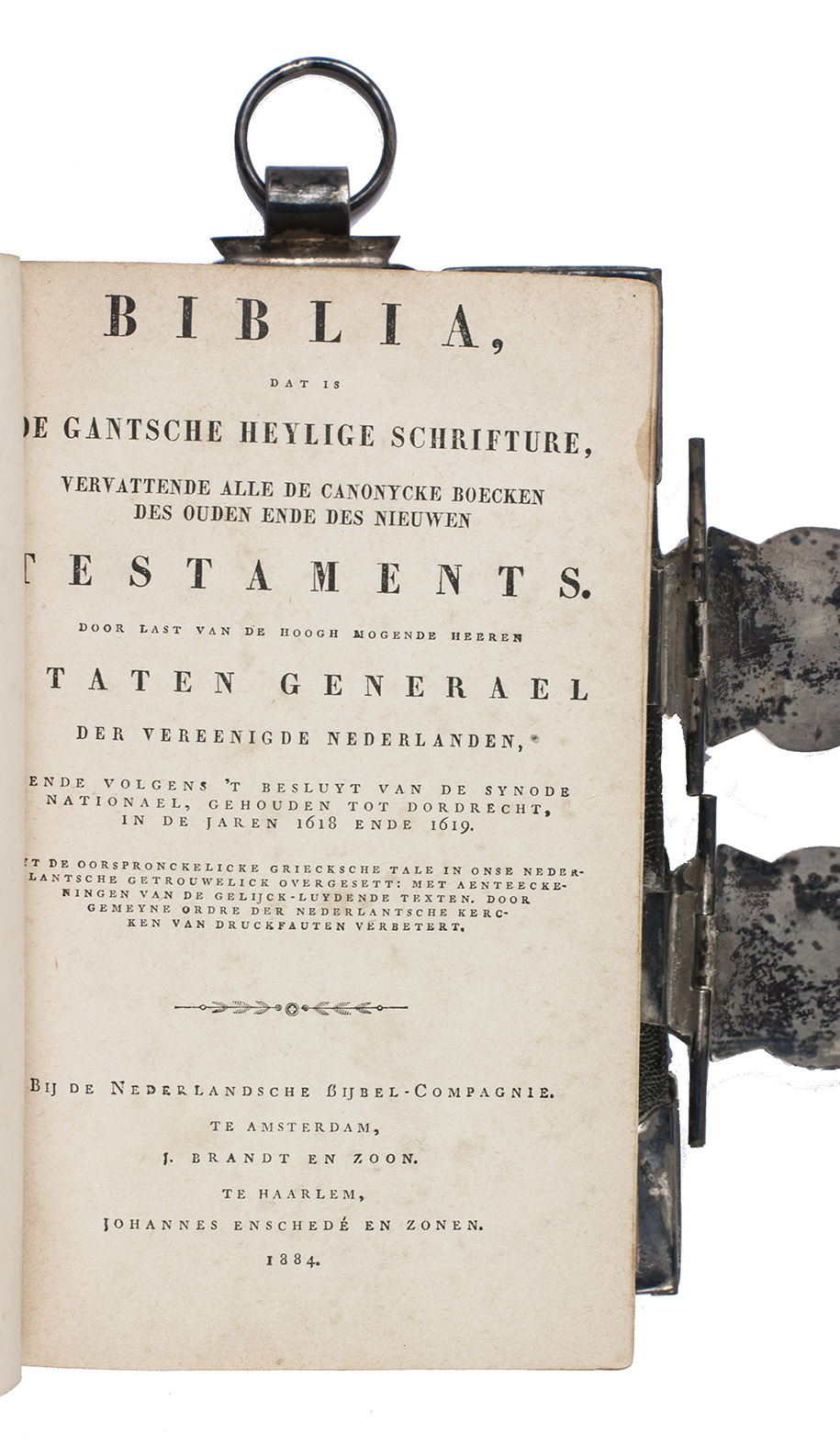 Biblia, dat is de gantsche Heylige Schrifture, vervattende alle de canonycke boecken des ouden ende des nieuwen testaments. ...Amsterdam, J. Brandt and son, Haarlem, Johannes Enschedé and sons, 1884.
