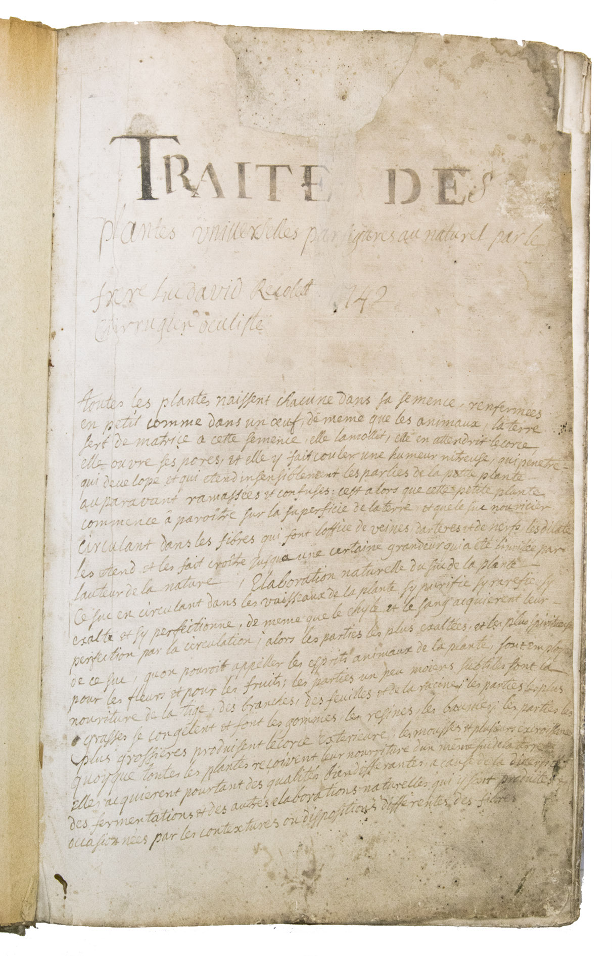 [Drop title:] Traite des plantes universelles par figures au naturel par le frere Luc david Recollet, chirrugien oculiste ...