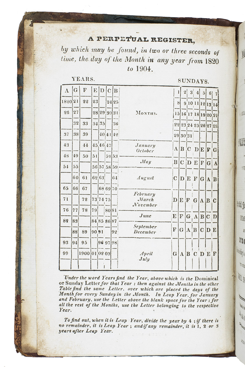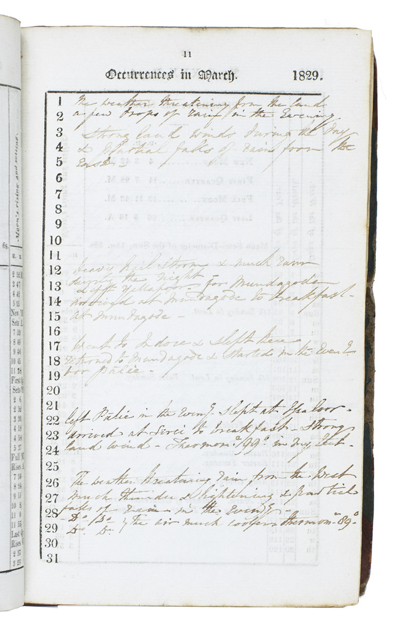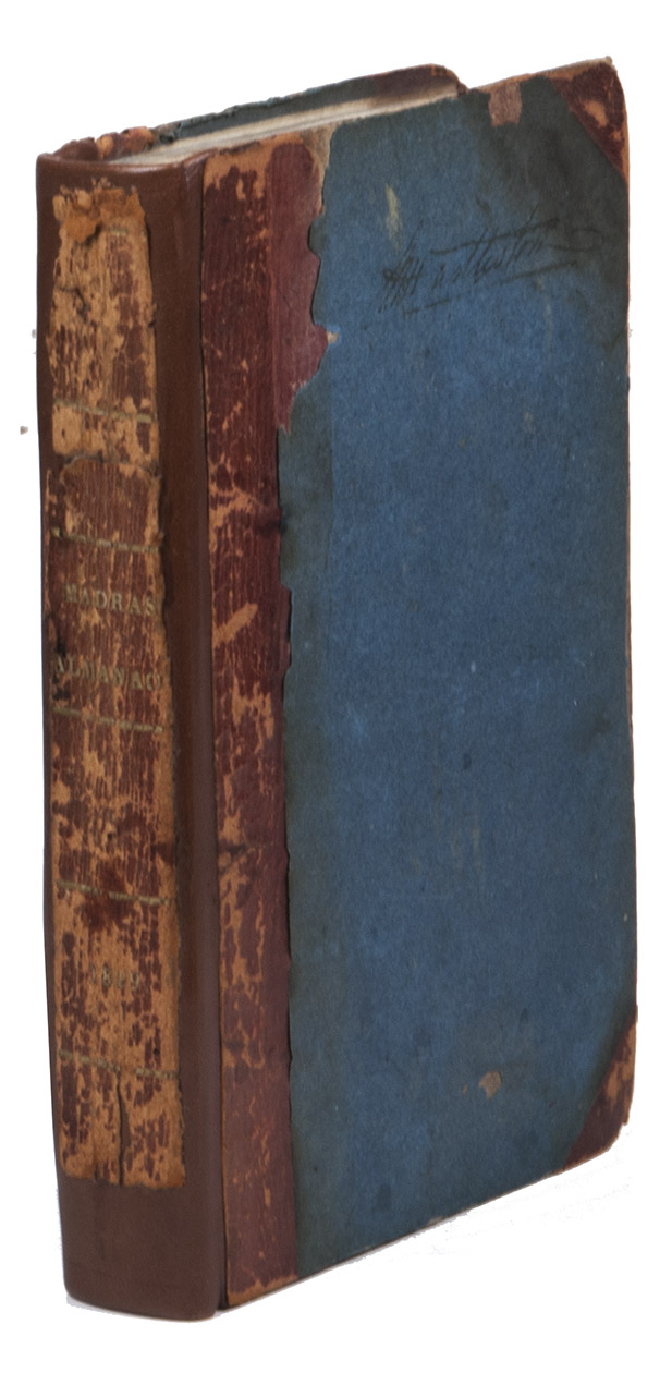 A rare issue of the Madras almanac, a landmark in the history of British-Indian colonial printing before the Mutiny in 1857. Styled on European almanacs, it is a great source of information on India and especially Madras in the years 1827-1829. The tradition of preparing and printing almanacs in India was quite new. The Madras almanac, first printed in 1799 and initially called the Madras register (and later, until its demise in 1935, the Asylum Press almanac), gives not only useful community information, such as birth and death rates for 1827-1828 and domestic events, but also offers glimpses into the British colonial and native Indian politics in India and the officers involved at that time.