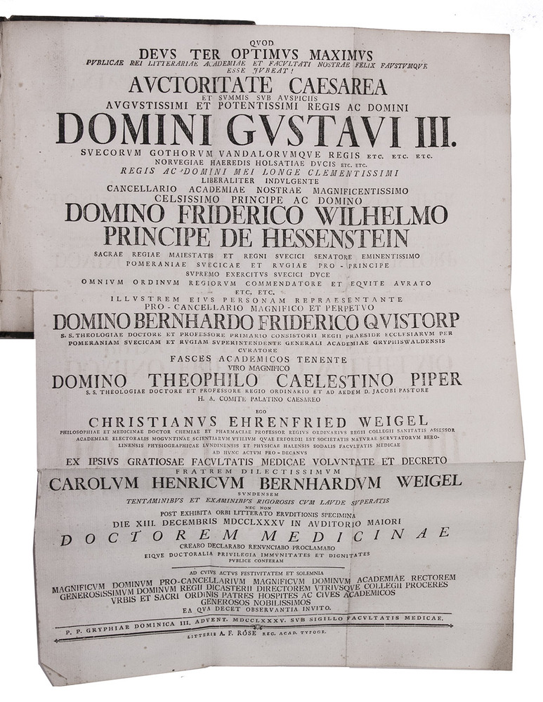 Ad 3: Short lecture on beryllium by Christian Ehrenfried Weigel (1748-1831), professor of chemistry and pharmacy at the University of Greifswald, which he read in his capacity as praeses when his brother Karl Heinrich Bernhard Weigel (died after 1834) received his doctorate.