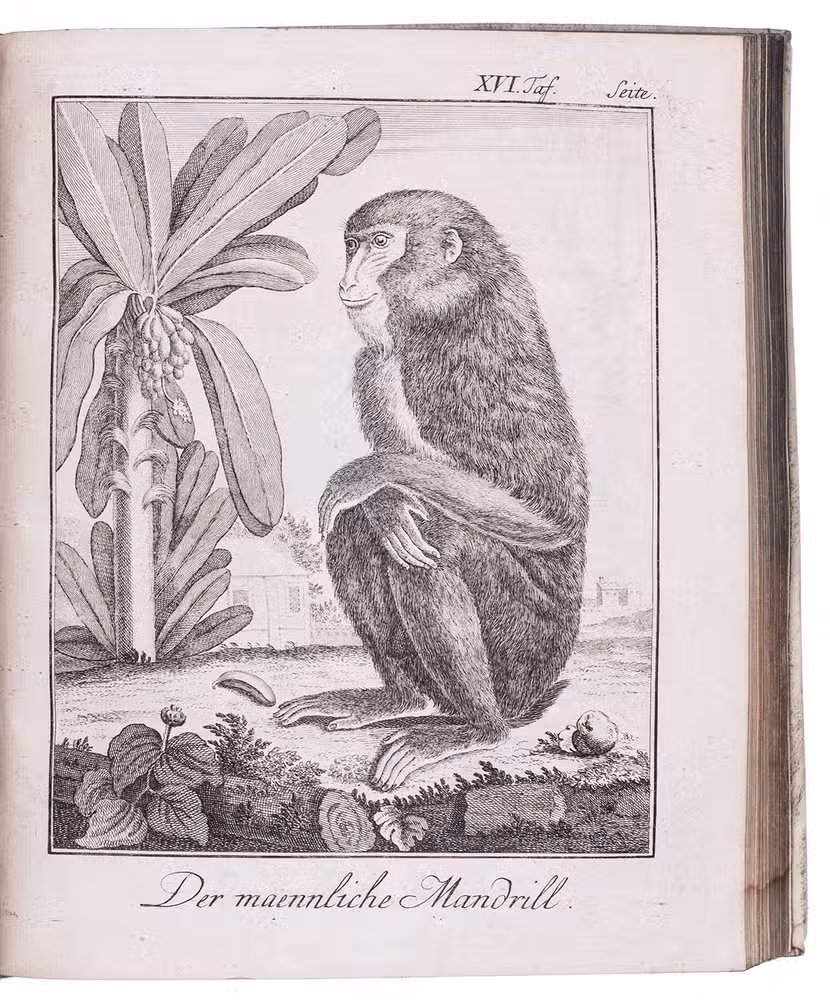 The first 8 volumes of the German Buffon, with an owner's inscription on title-page of the first volume dated 1750. Only some occasional spot, but otherwise in very good condition. Nissen, ZBI 709; cf. Anker 79 (vols. IX-XI); DSB II, pp. 576-582; PMM 198; Wood p. 267.