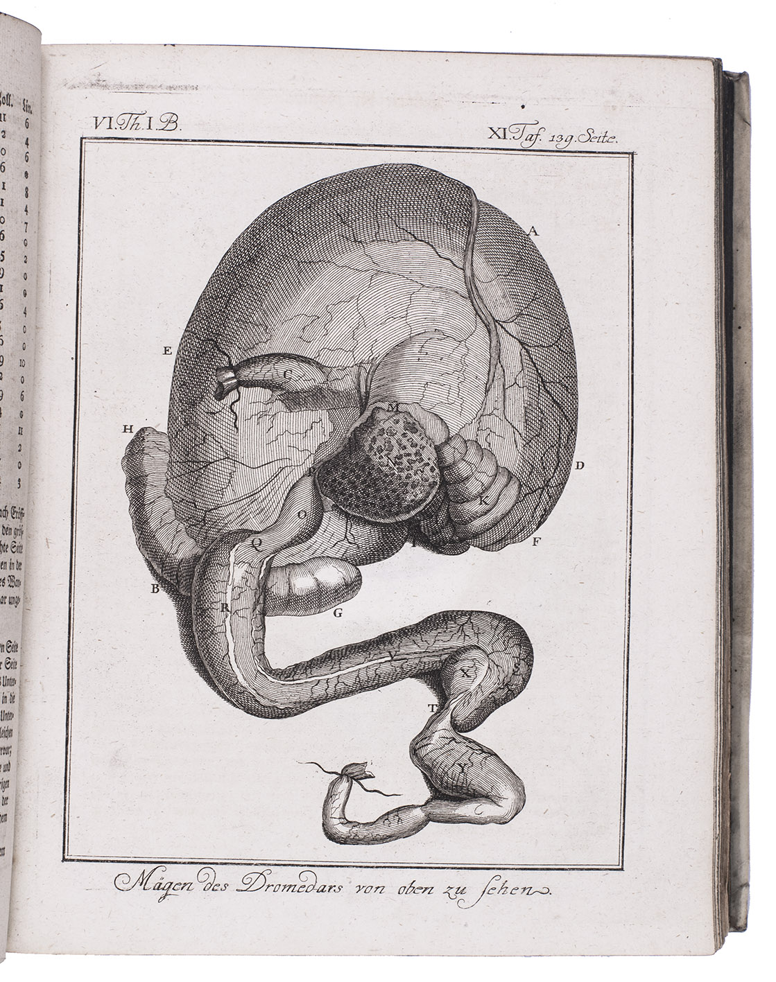 Hamburg and Leipzig, Georg Christian Grund and Adam Heinrich Holle, 1750-1772. 8 (of 11) volumes (divided into two parts each). 4to. With engraved vignette on 16 title-pages, engraved headpiece to the dedication, engraved headpieces to each part, 2 engraved maps, folding engraved genealogical table, 1 folding letterpress table and 575 engraved plates. Contemporary vellum (not strictly matching). Each vol. ca. 650 pp.