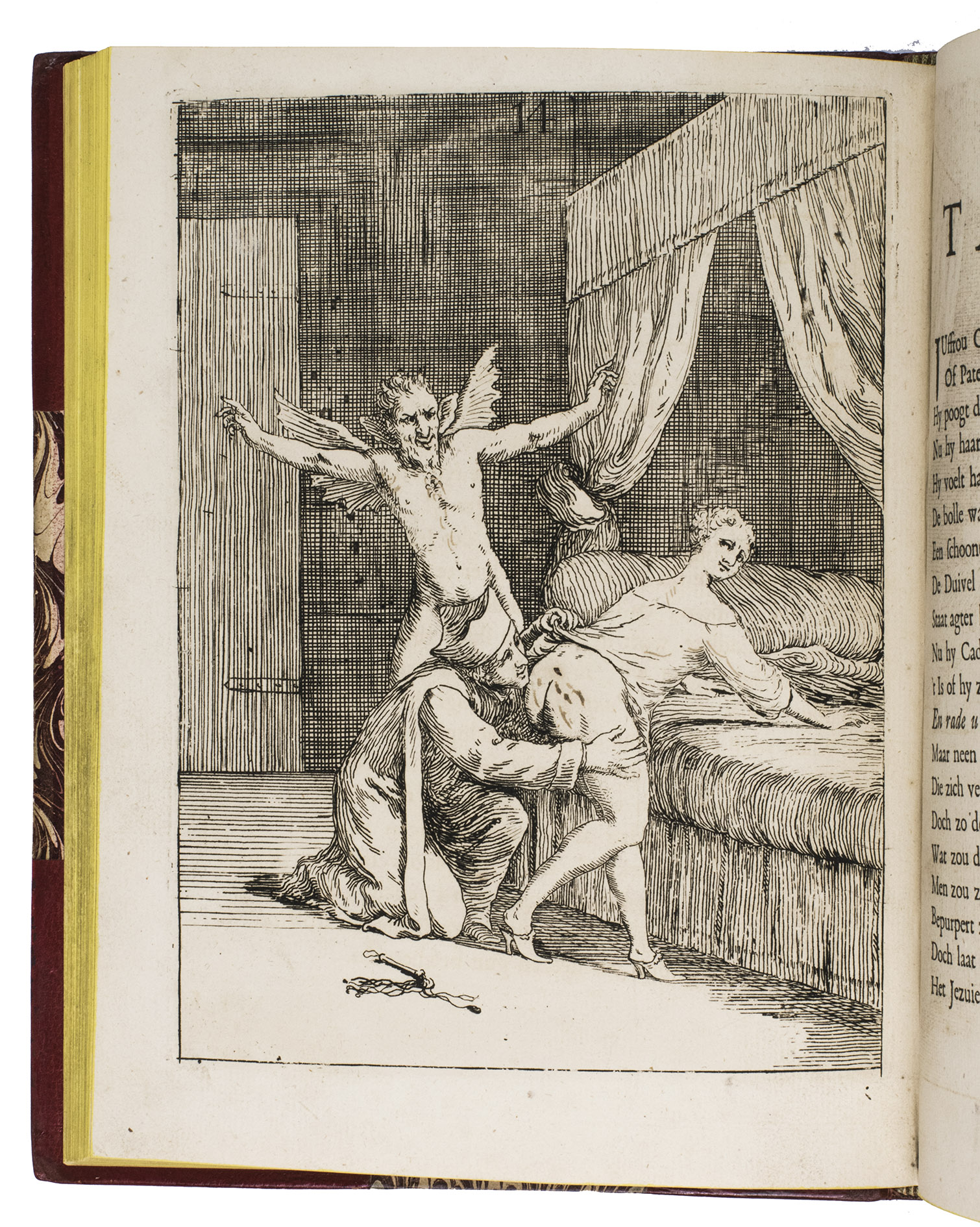 Five of the plates in the present copy have some very minor additions in ink. With some occasional minor thumbing, four tiny wormholes in the last four leaves, and some offsetting of the plates onto the facing pages of letterpress text, otherwise in very good condition with crisp impressions of the plates. The binding with some minor restorations, otherwise also very good. Gay & Lemmonyer II, col. 603 ("tres rares") & col. 551 (French ed.: "extrêmement rares"); Kearney, The private case 901-902 (2 incomplete copies); STCN (3 copies); WorldCat (3 copies, incl. 2 the same); for background information: R.H. Robbins, Encyclopedia of witchcraft and demonology (1968), pp. 69-74.