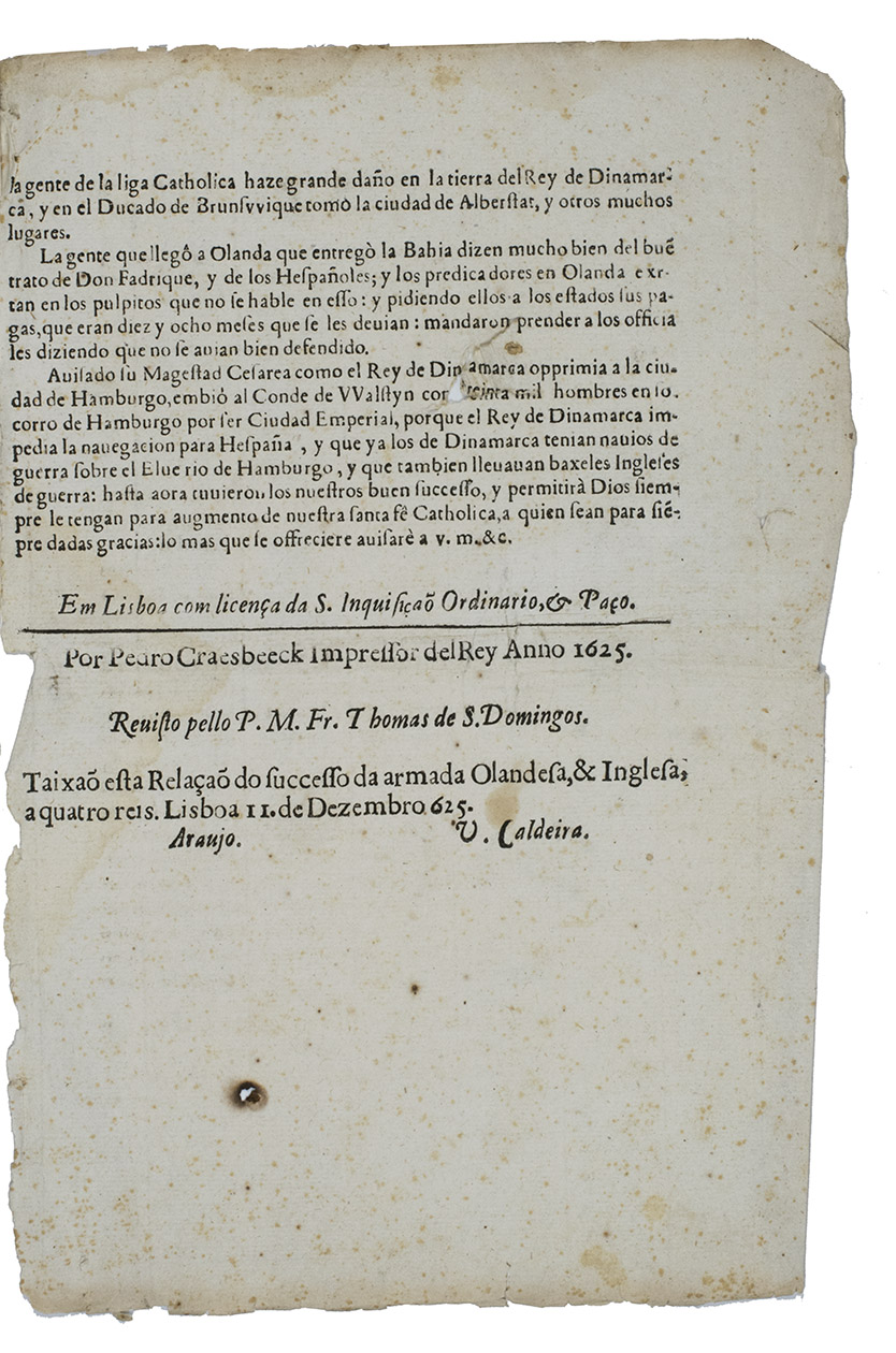 Lisbon, Pedro Craesbeeck, 1625. Folio. Not bound. [3], [1 blank] pp.