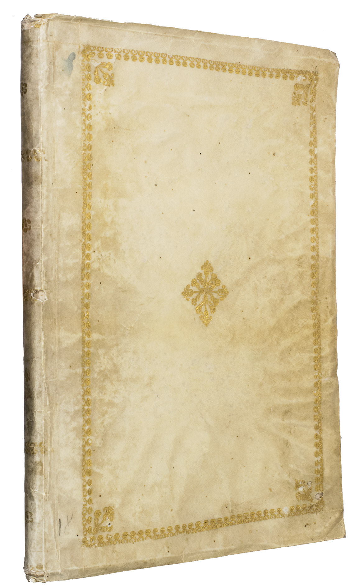 With a bookplate of "Johannes Ferri de Legnano" mounted on the verso of the first flyleaf, the binding shows some wear, including a minor wormhole and a blue ink stain on the front board, as well as some tears to the vellum of the rear board. The second folding plate is slightly browned, with some tears, and has been reinforced on the verso, the third folding plate shows some foxing. Otherwise in good condition. BL 17th-Century Italian I, p. 189; Katalog der Ornamentstich-Sammlung, SKB Berlin 3049; Moreni I, pp. 217-218; NUKAT xx003642114; OPAC SBN RMRE001305; Ruggieri, 503; USTC 1707652, 1726213; Vinet, 614; not in Brunet