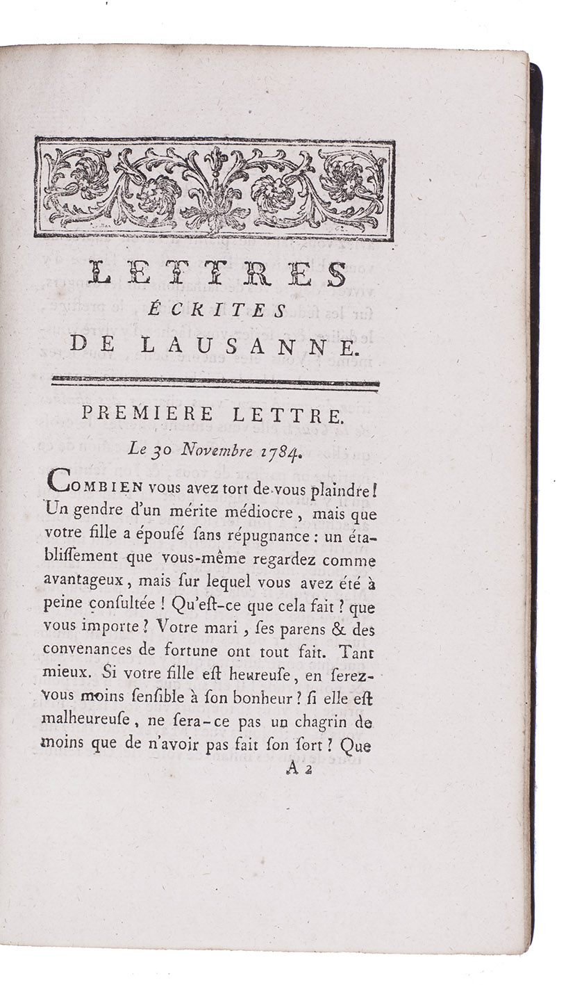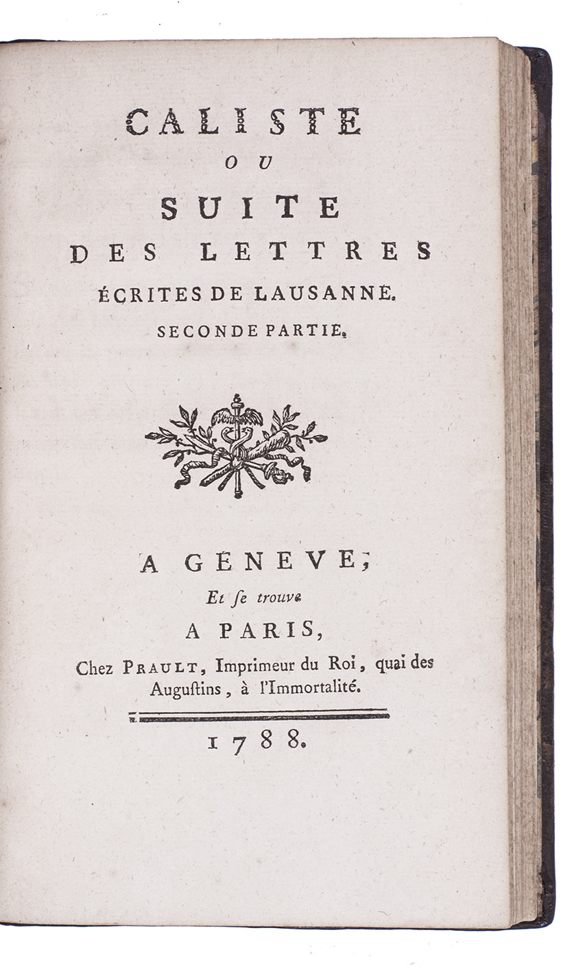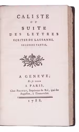 Lettres écrites de Lausanne.Including: Caliste ou suite des lettres écrites de Lausanne.