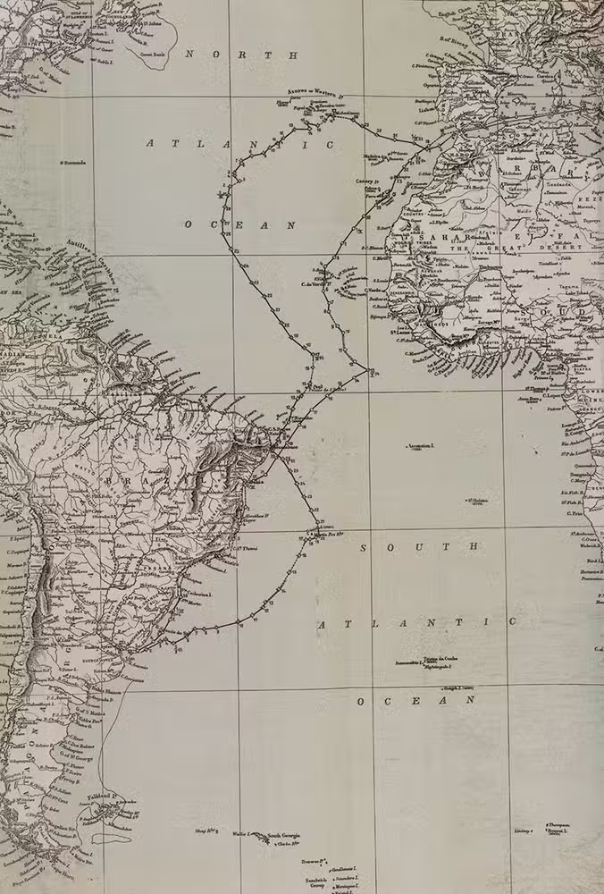 On 27 August 1884, the corvette Aurora sailed from Pola to Gibraltar and further via St. Cruz on Tenerife to Bahia. After a short stay of about ten days, the Aurora sailed to Rio de Janeiro, also passing some other places, to Buenos Aires and from there via Montevideo back to Pernambuco. Thereafter, the Aurora sailed back to Pola via São Miguel, Ponta Delgada and Gibraltar, reaching Pola's central port on 25 April 1885.