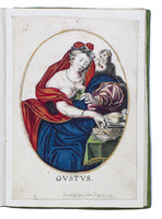 A very rare complete set (only the second known to survive) of a print series of the five senses, attributed to the Antwerp artist-engraver Adriaen Collaert (ca. 1560-1618), printed on vellum, beautifully coloured with gouaches and extensively highlighted with gold. Each print shows an oval three-quarter-length portrait of a seated female figure, richly dressed. The series has no printed title, but the title of each print is engraved below the oval: "VISVS." (sight), "GVSTVS." (taste), "TACTVS." (touch), "OLFACTVS." (smell) and "AVDITVS." (hearing). Each shows a situation that clearly alludes to the relevant sense, though in many cases one can also find secondary allusions. Some of the iconography is borrowed from Collaert's earlier and more common series on the five senses (New Hollstein 1367-1371) but the scenes are completely different. The prints are not numbered, but "Visus" must have been intended as the first, for only it has an imprint: "Ioan. Adr. Collaert excud", indicating that the series in its present only known state was published after Collaert's 1618 death by his son Jan Adriaensz. (Jan III) Collaert (1591-1628). The rich bright colouring and extensive gold highlighting in the present set adds to the already luxurious feel of the clothes, jewellery and furnishings.
