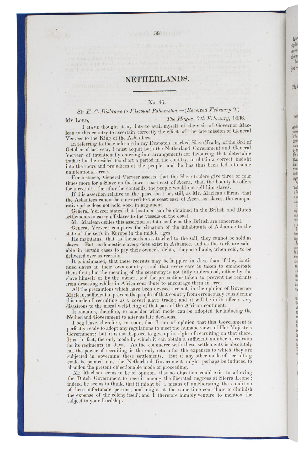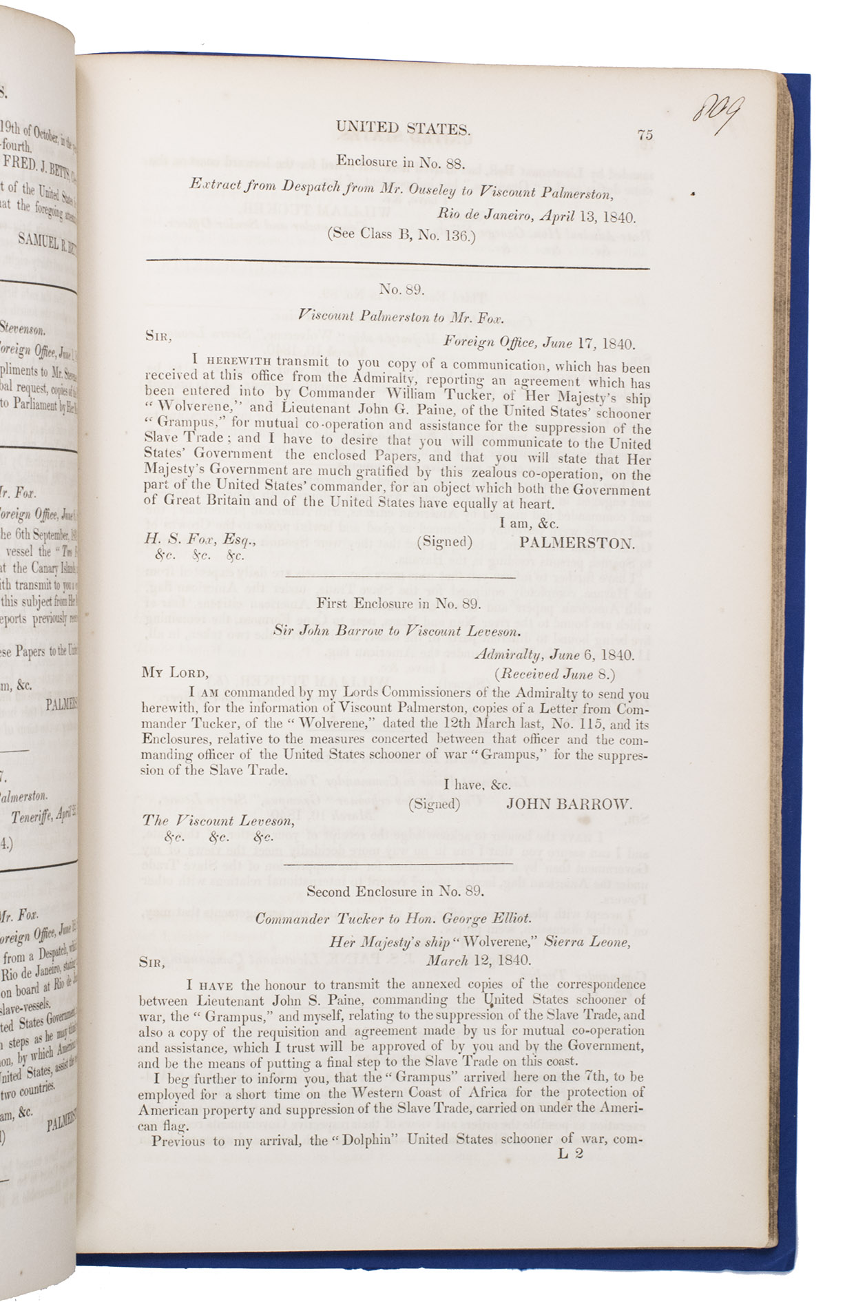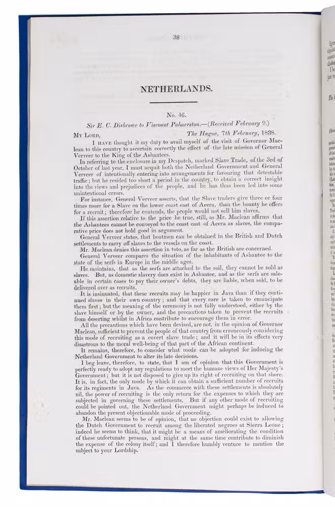 (2) Class C. Correspondence with foreign powers, parties to the conventions between Great Britain and France upon de slave trade. May 1838 - February 1839.
