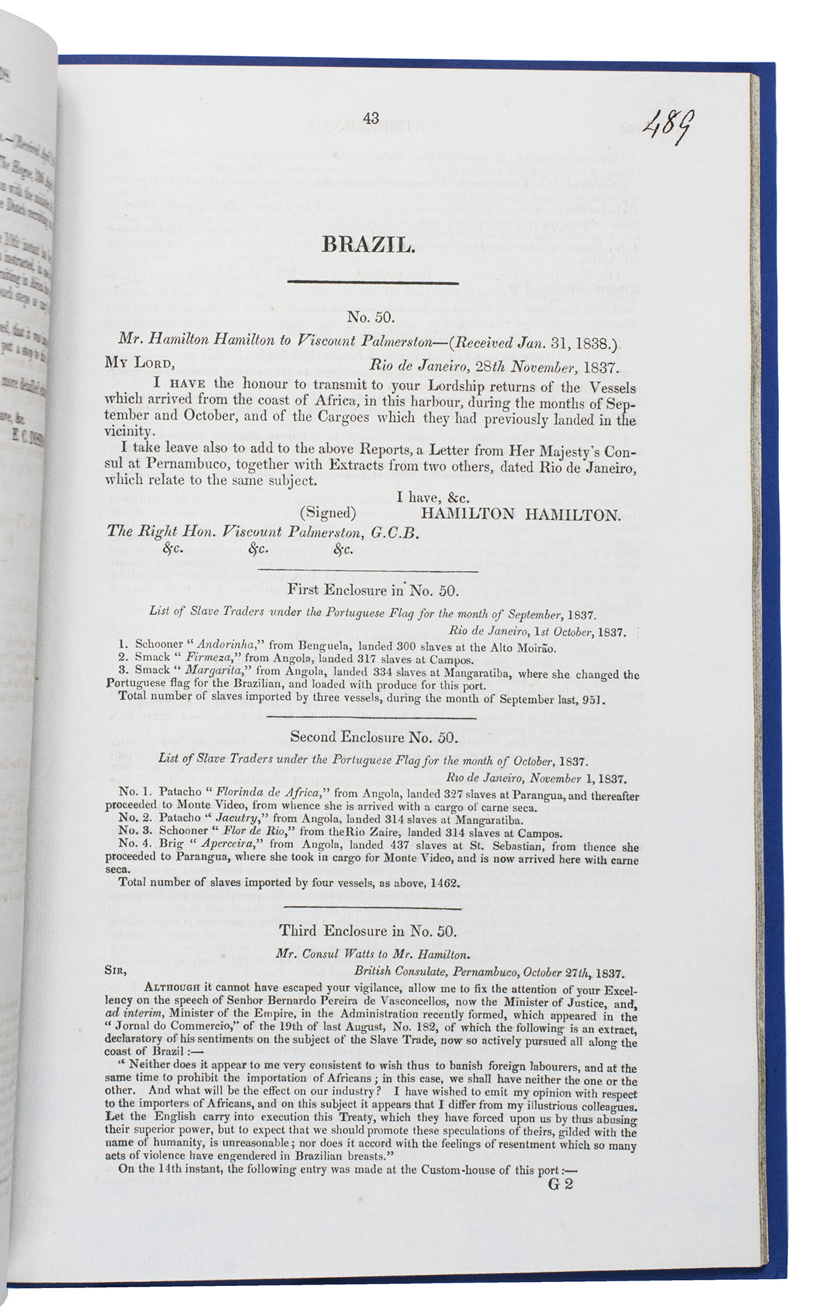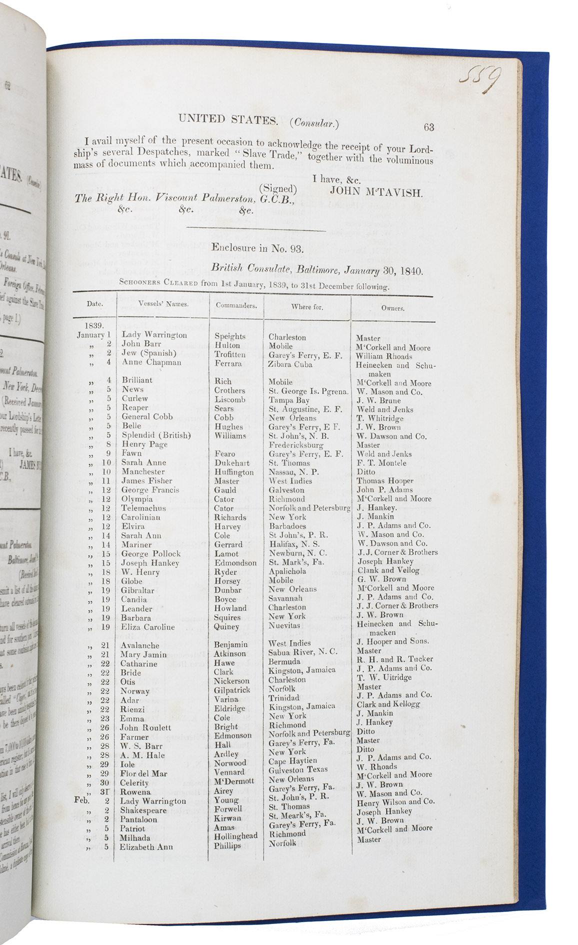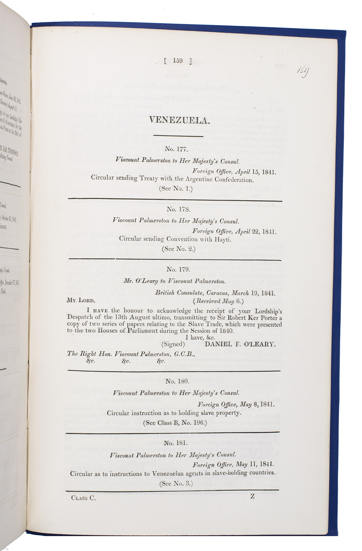 (2) Class C. Correspondence with foreign powers, parties to the conventions between Great Britain and France upon de slave trade. May 1838 - February 1839.