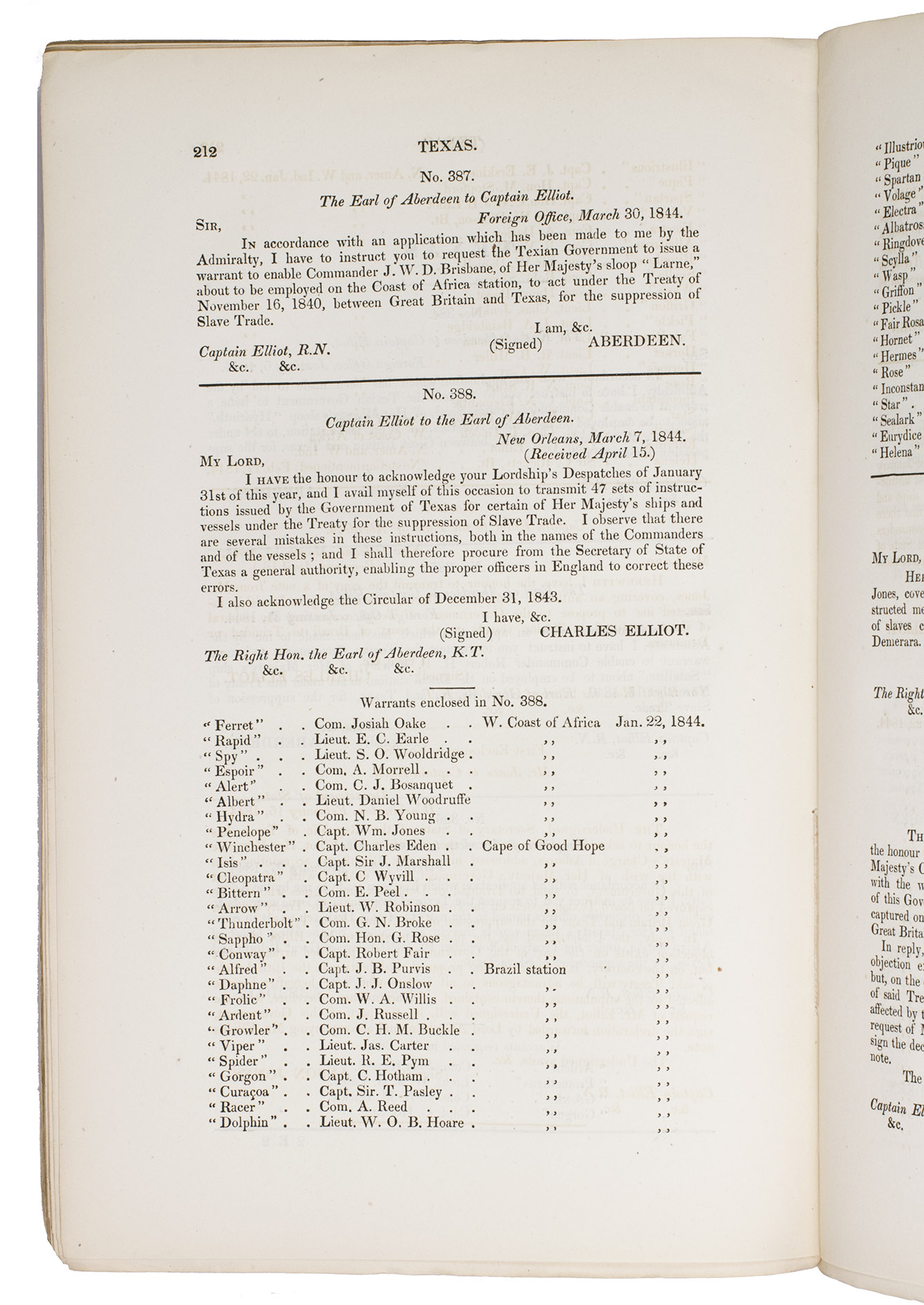 (1) Class B (further series). Correspondence with foreign powers regarding the slave trade. 1837.