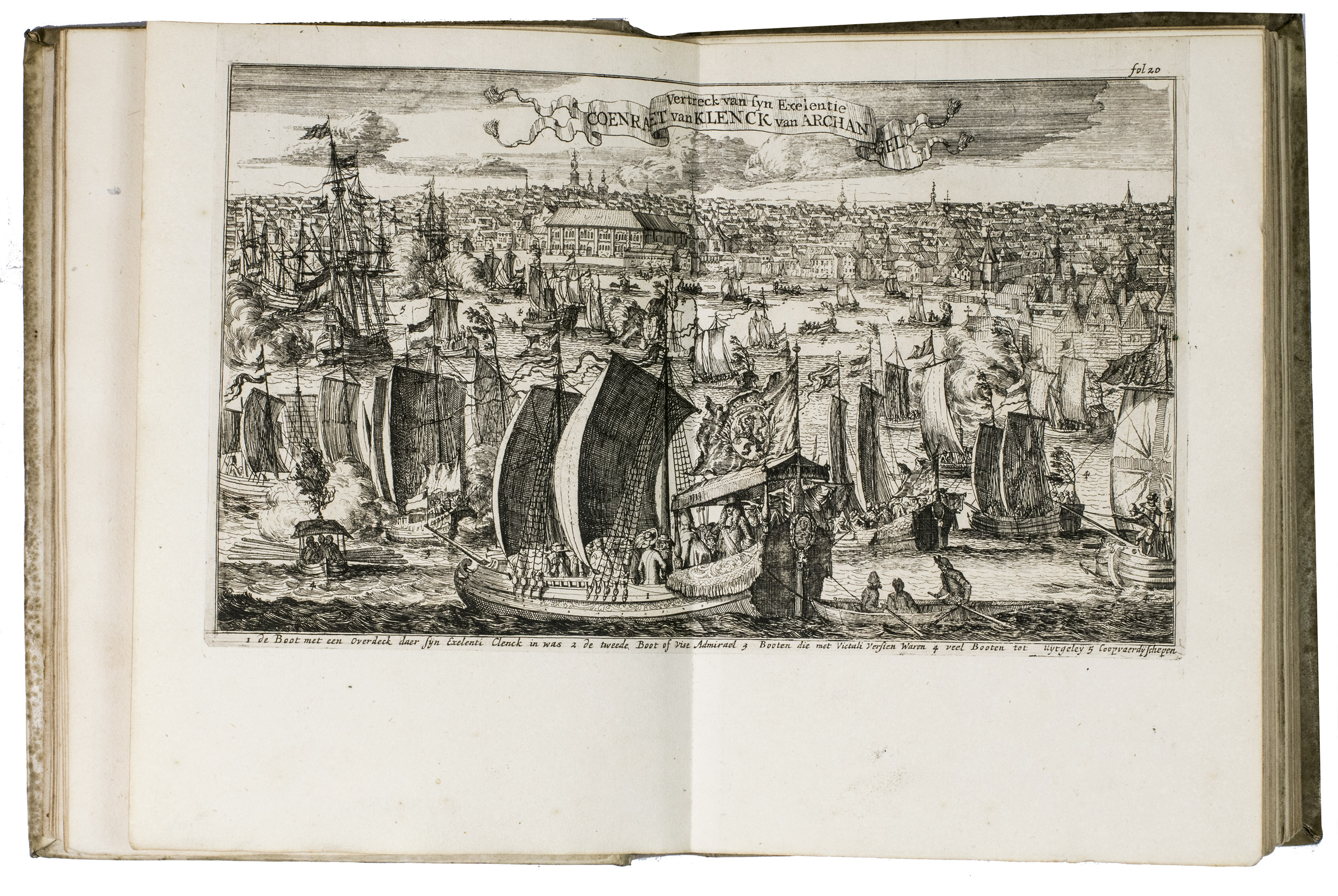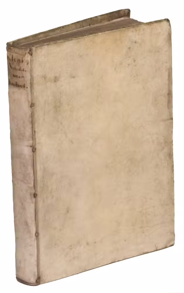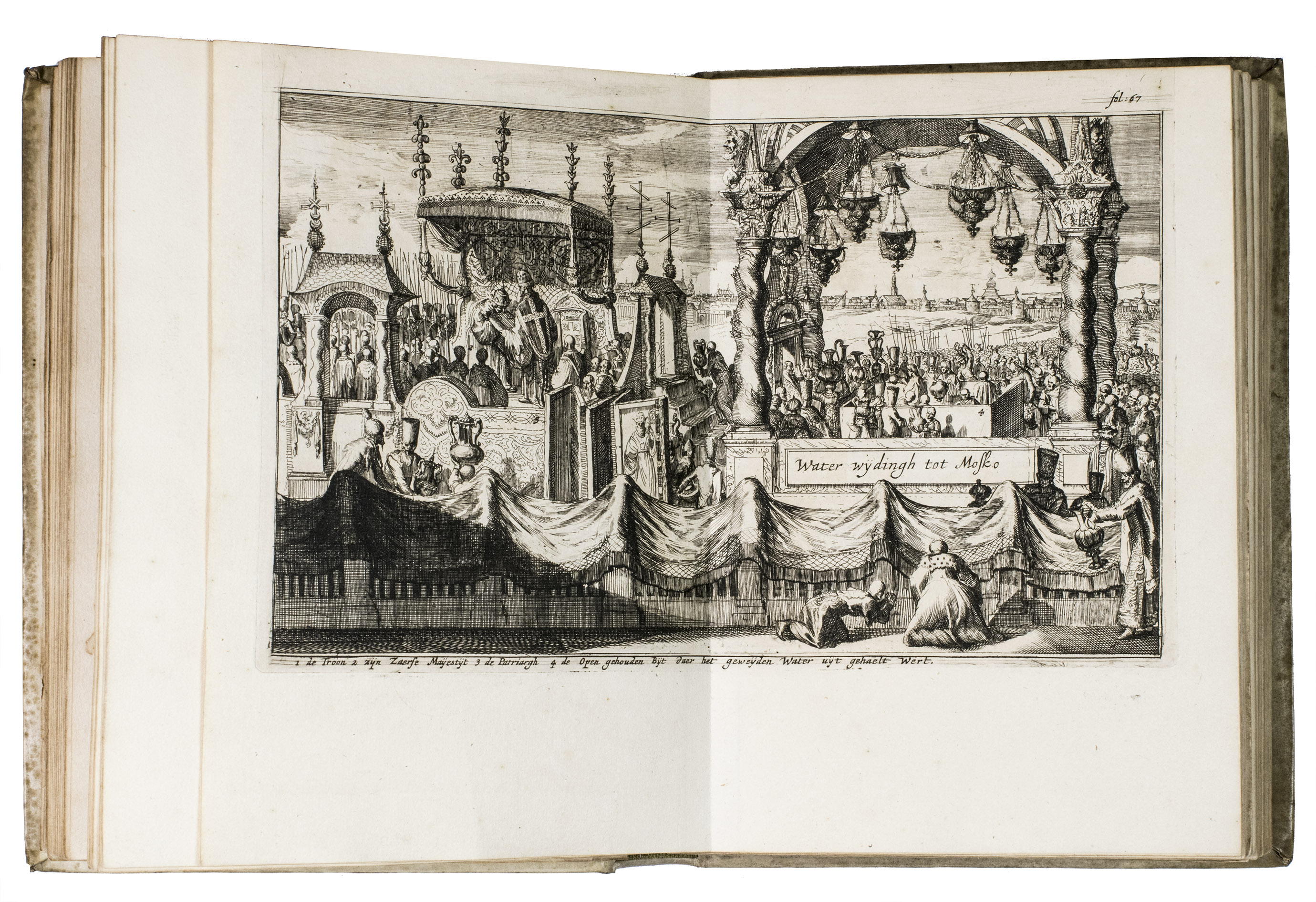 Amsterdam, Jan Claesz. ten Hoorn, 1677. 4to. With an etched frontispiece and 6 double-page etched plates. Contemporary vellum, sewn on 4 supports laced through the joints, with the manuscript title at the head of the spine. [8], "214" [= 220], [2] pp.