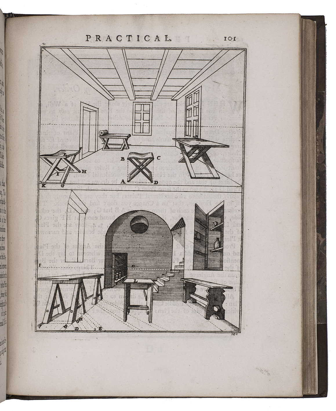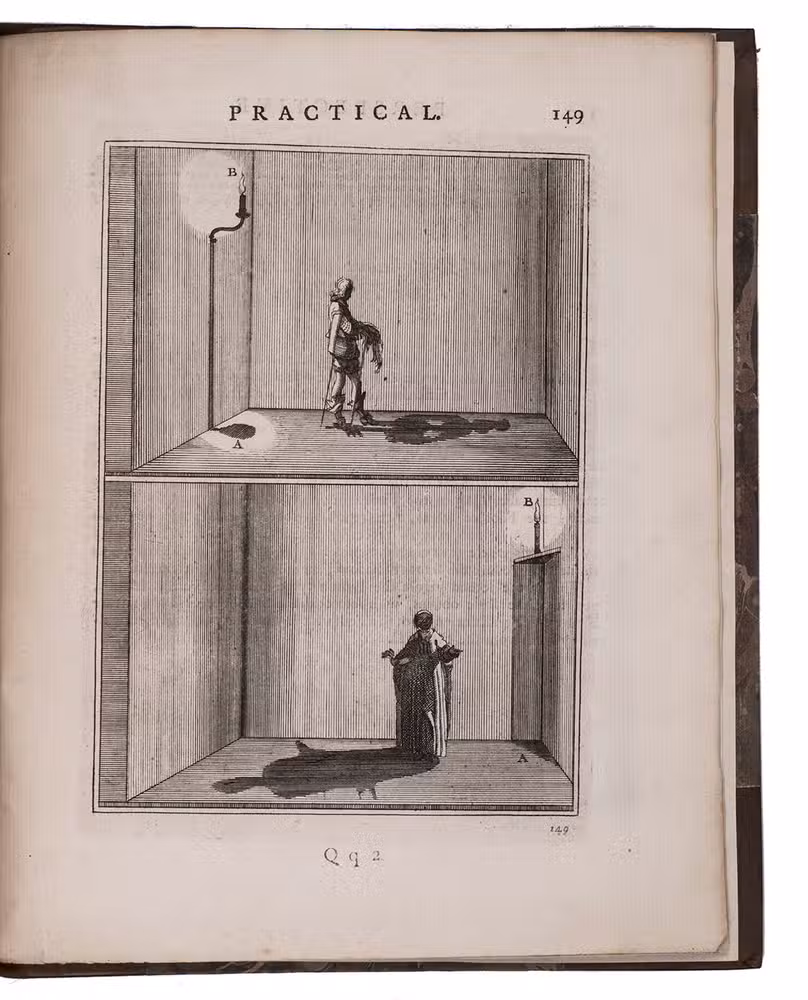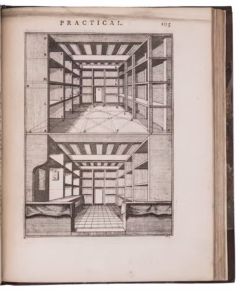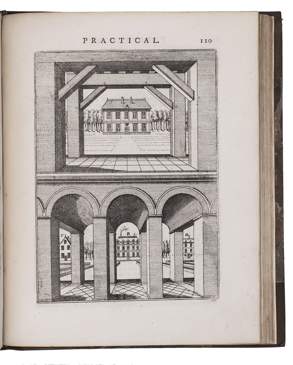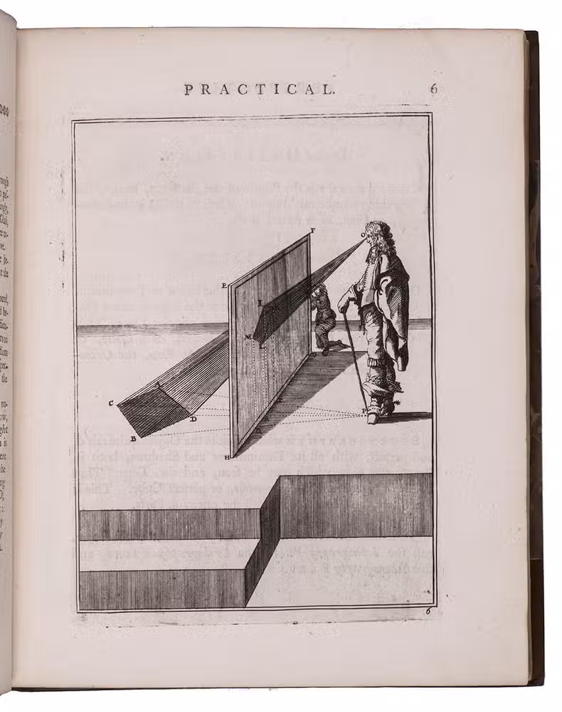 "Third" [recté fourth] edition of the second English translation (by the encyclopaedist Ephraim Chambers) of one of the most influential handbooks of perspective ever published: Le perspective practique (Paris, 1642) by the Jesuit mathematician Jean Dubreuil (1602-1670). "Probably the most influential [work on perspective] ever published expressly for the use of a lay audience" (Millard), it is clearly and thoroughly illustrated with 150 full-page engravings printed from the original plates of the 1672 English edition, which were copied in mirror image from the original 1642 edition, plus 2 folding plates illustrating Hodgson's essay. It was especially important in England, where Robert Pricke published a translation already in 1672 and Chambers published the present improved translation in 1726. The title page describes it as "highly necessary for painters, engravers, architects, embroiderers, statuaries, jewellers, tapestry-workers, and others concerned in designing." The 1739 edition introduced the present 16-page essay on the theory of perspective by James Hodgson, a fellow of the Royal Society and one of England's leading mathematicians, as well as the two folding plates that accompany it.