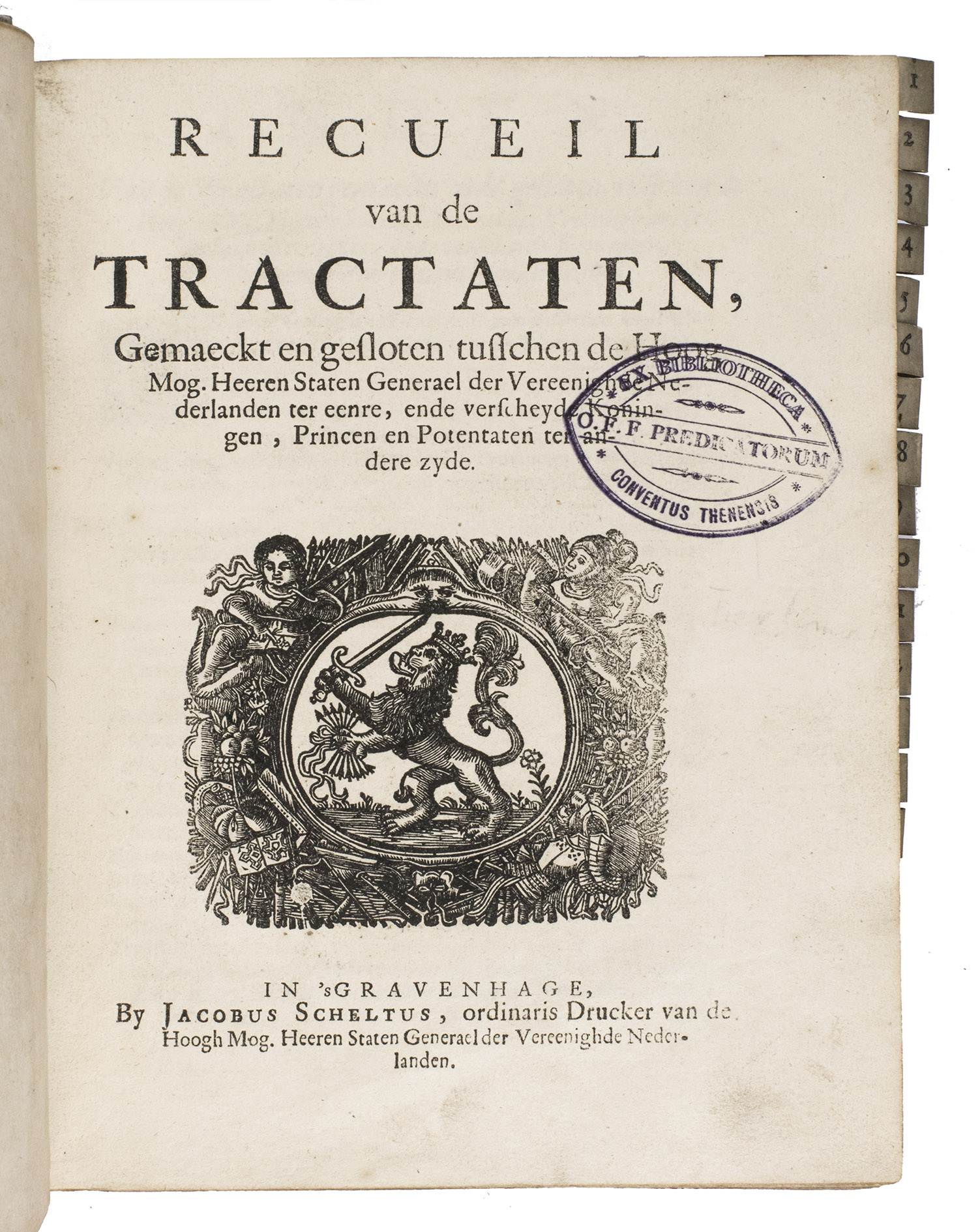 Recueil van de tractaten, gemaeckt en gesloten tusschen de Hoog Mog. Heeren Staten Genereael der Vereenighde Nederlanden ter eenre, ende verscheyde Koningen, Princen en Potentaten ter andere zyde.