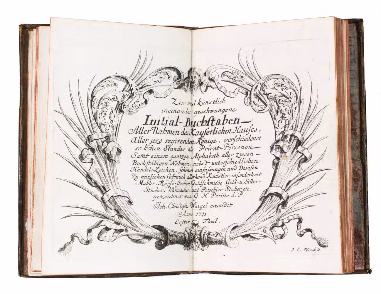 Nürnberg, Johann Christoph Weigel, [ca. 1726 (engraved ca. 1700 - ca. 1726)]. 16 x 11 cm. With 14 engraved plates (plate size 13 x 19 cm) bound as double-page plates. Contemporary mottled calf, gold-tooled spine.