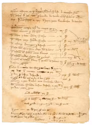 Written in Mallorcan, a dialectal variant of Catalan, in a scribal hand, on cotton paper manufactured in Mallorca by Arab paper makers. Under Muslim rule from 903 until 1229, Mallorca ("Mayurqa") had formed one of the Eastern Islands of al-Andalus ("al-jazair al-sharqiya li-l-andalus"). The art of papermaking, long mastered by the Arabs, had reached the southern Spain only in the 12th century through the Muslim conquest, at a time when most of western Europe still favoured vellum as a writing material. The Arab tradition of papermaking is still evident in this early 14th-century insular specimen.