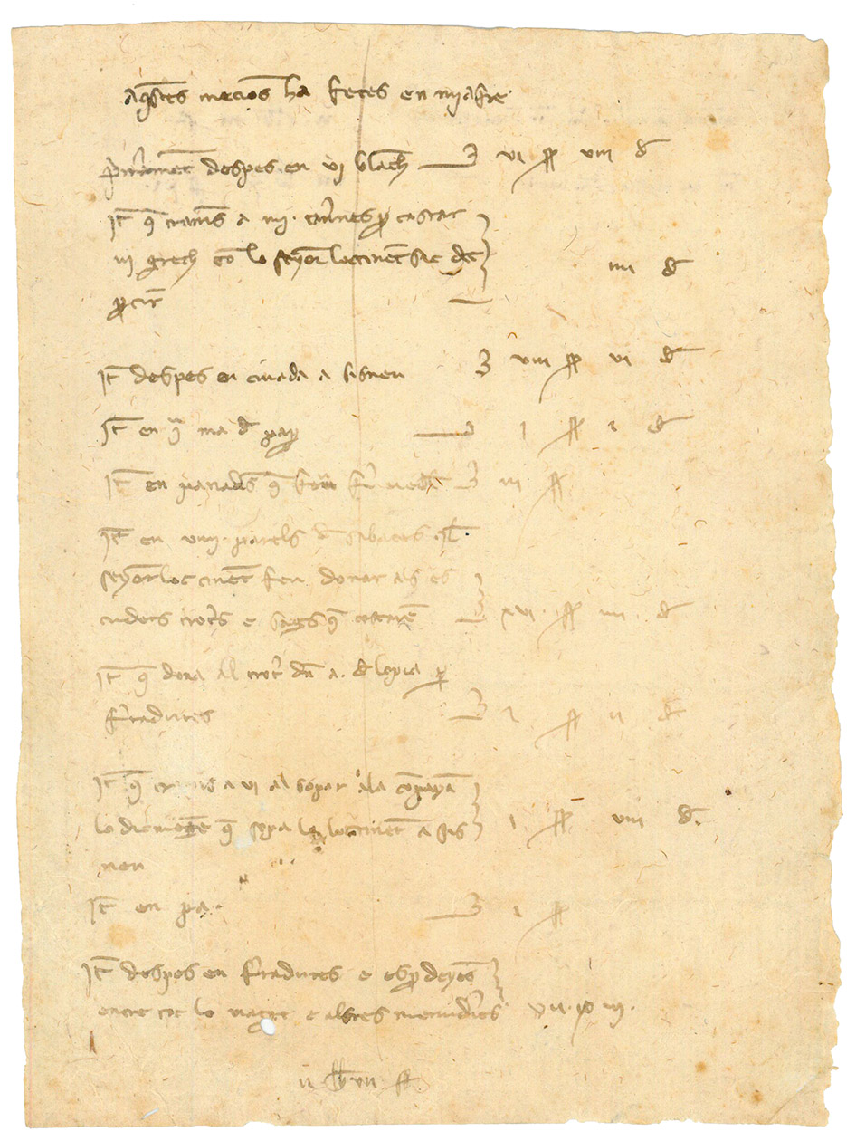 [Mallorca?], Saturday, 12 June [1330s?]. 4to (ca. 165 × 230). Catalan manuscript on cotton paper. 2 written pp. on a bifolium and a single leaf.