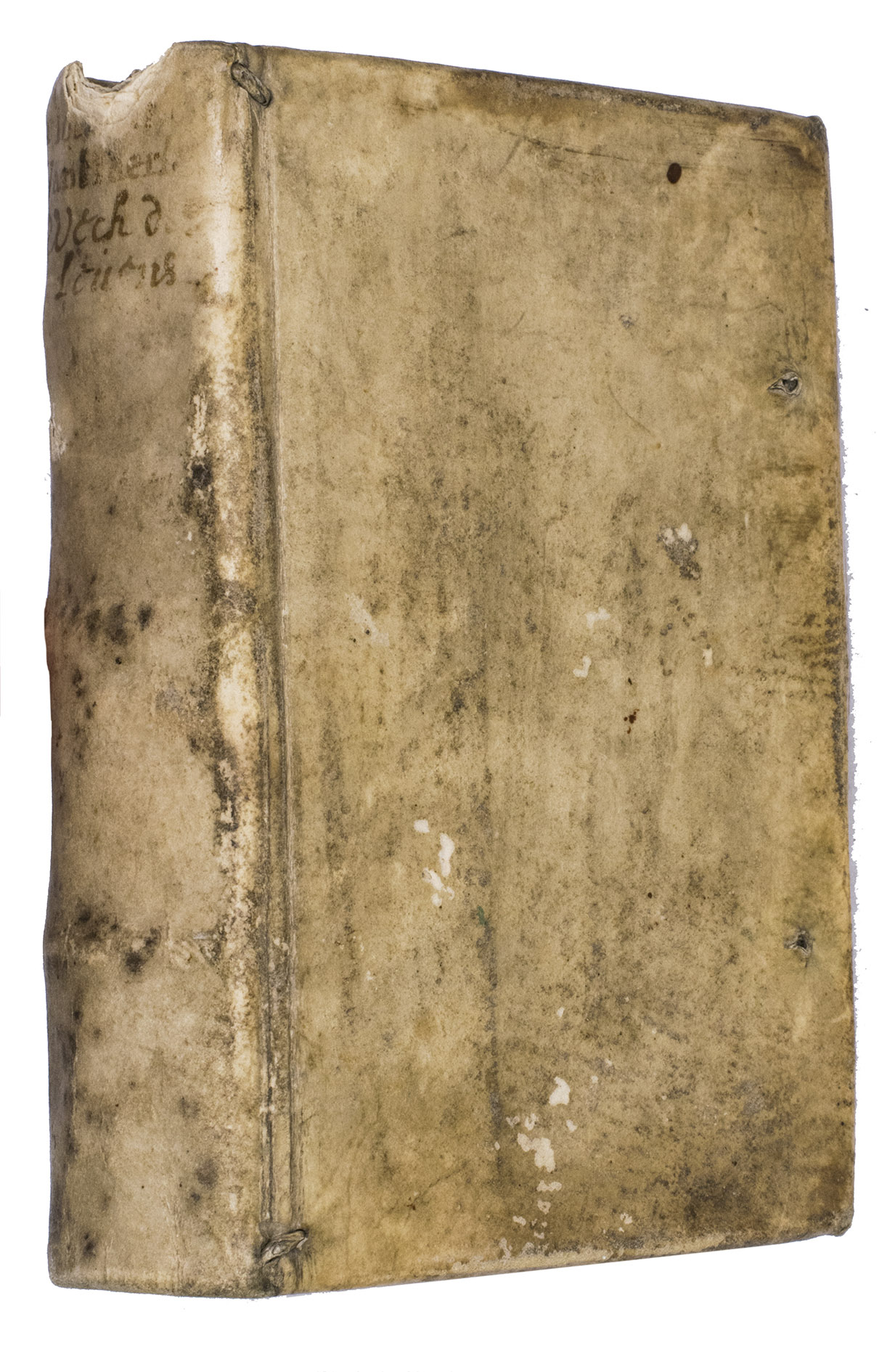 [Antwerp, Heyndrick Peetersen van Middelburg, 1547?]. 8vo. With title printed in black and red, within woodcut borders. Contemporary slightly overlapping parchment, remnants of ties. [200] ll.