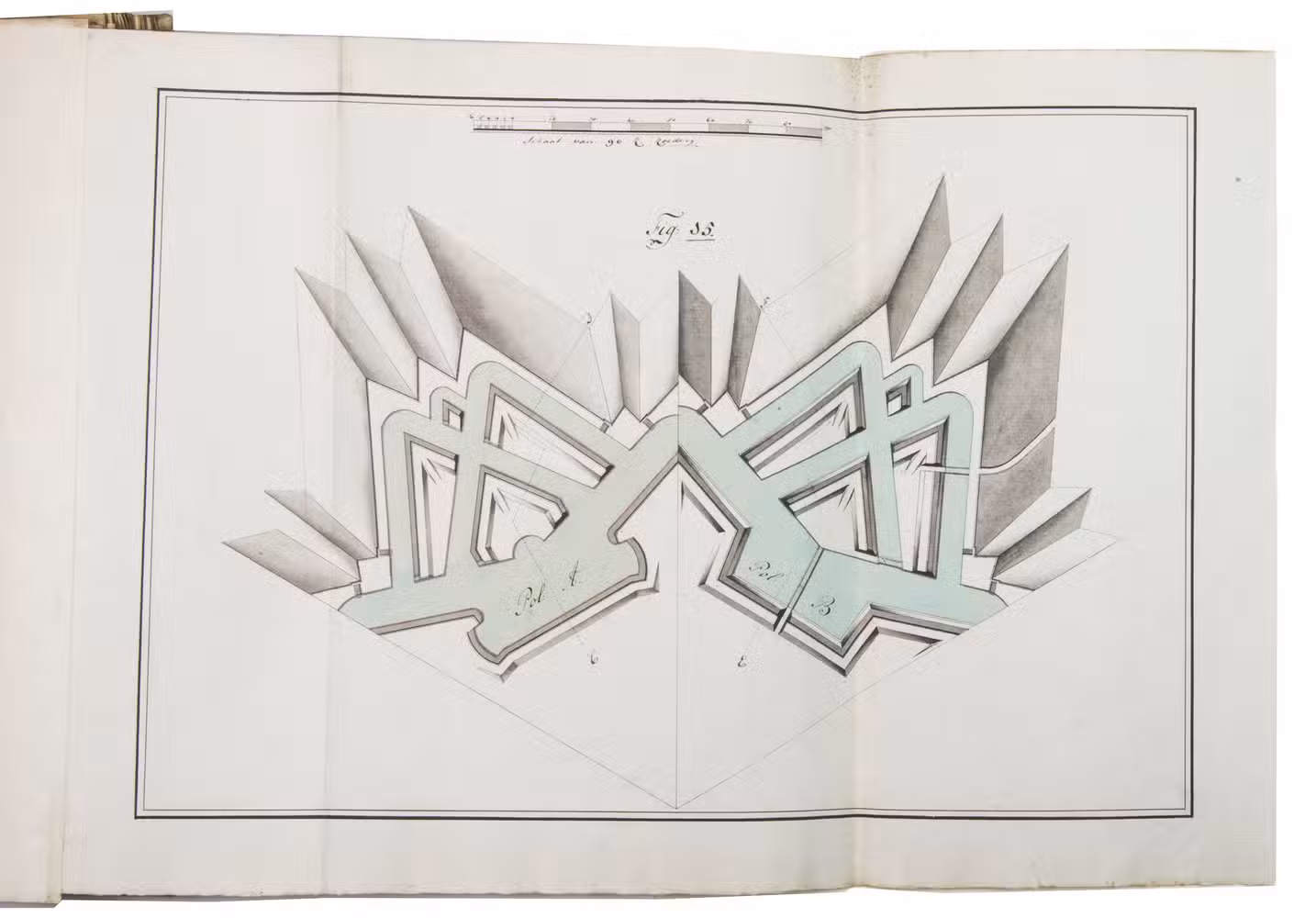 Grondbeginselen der vestingbouw, volgens de verschillende manieren van versterken van Pagan, Vauban en Coehoorn. Geconstrueerd getekend en beschreven door C C van Hooff.
