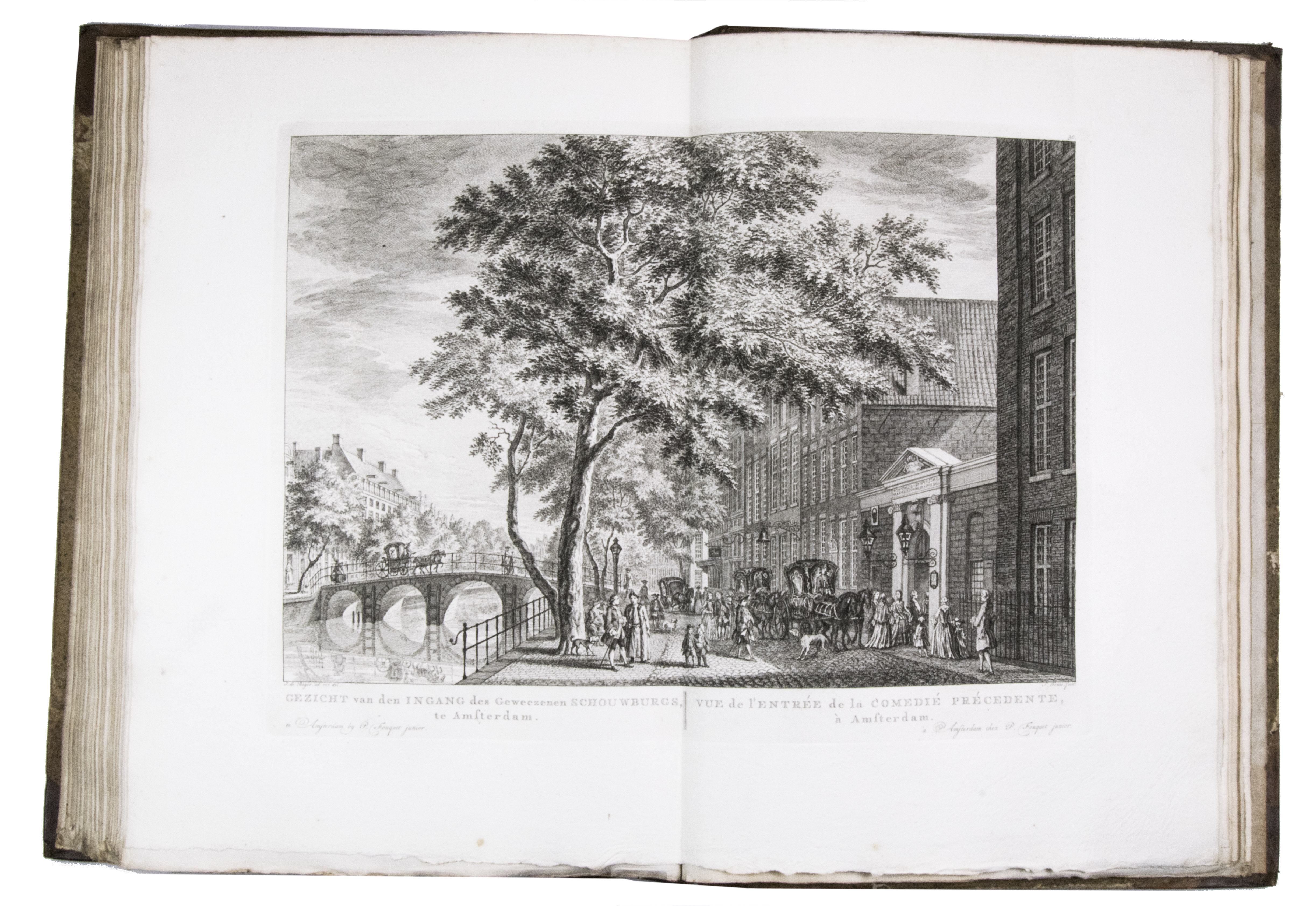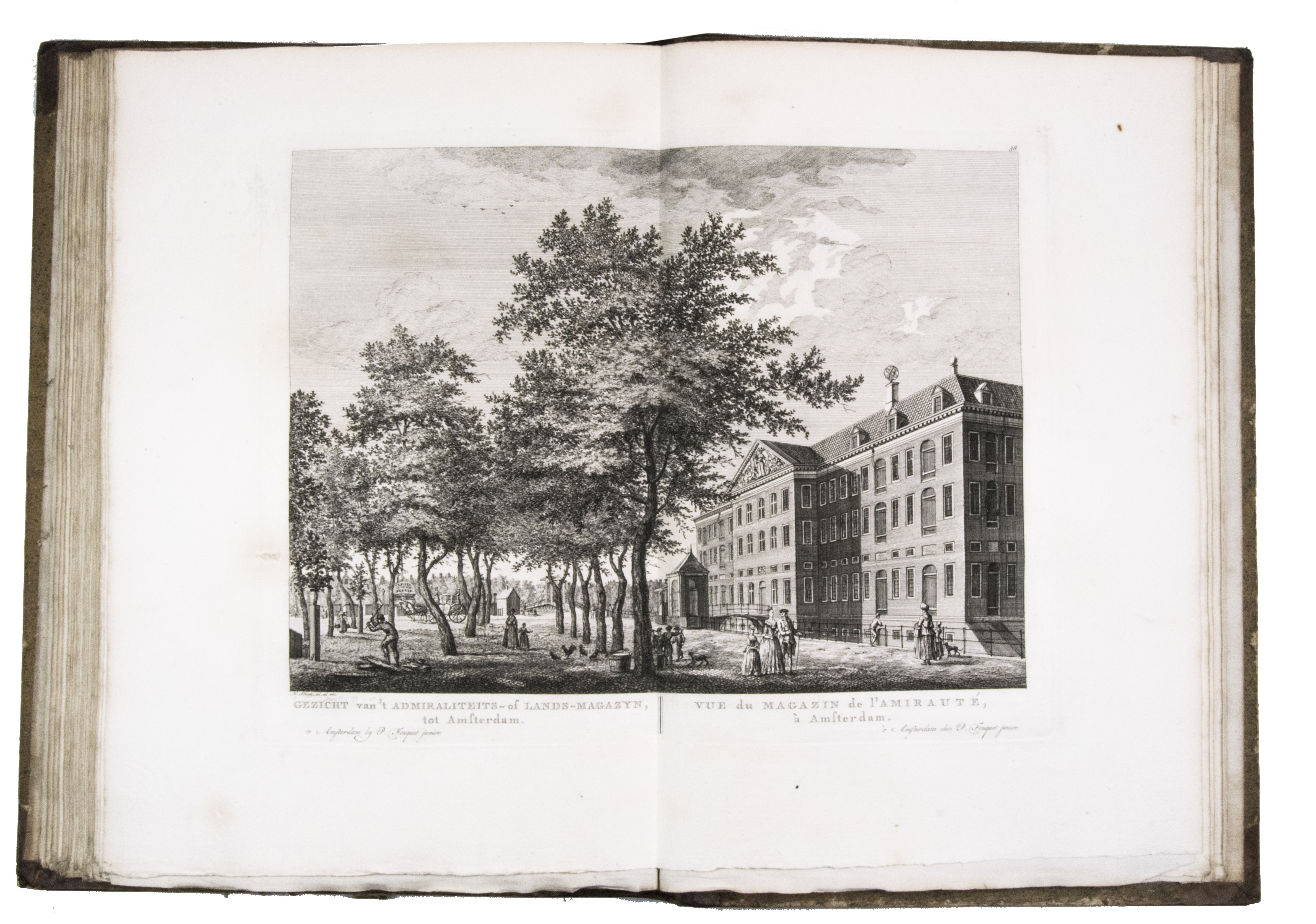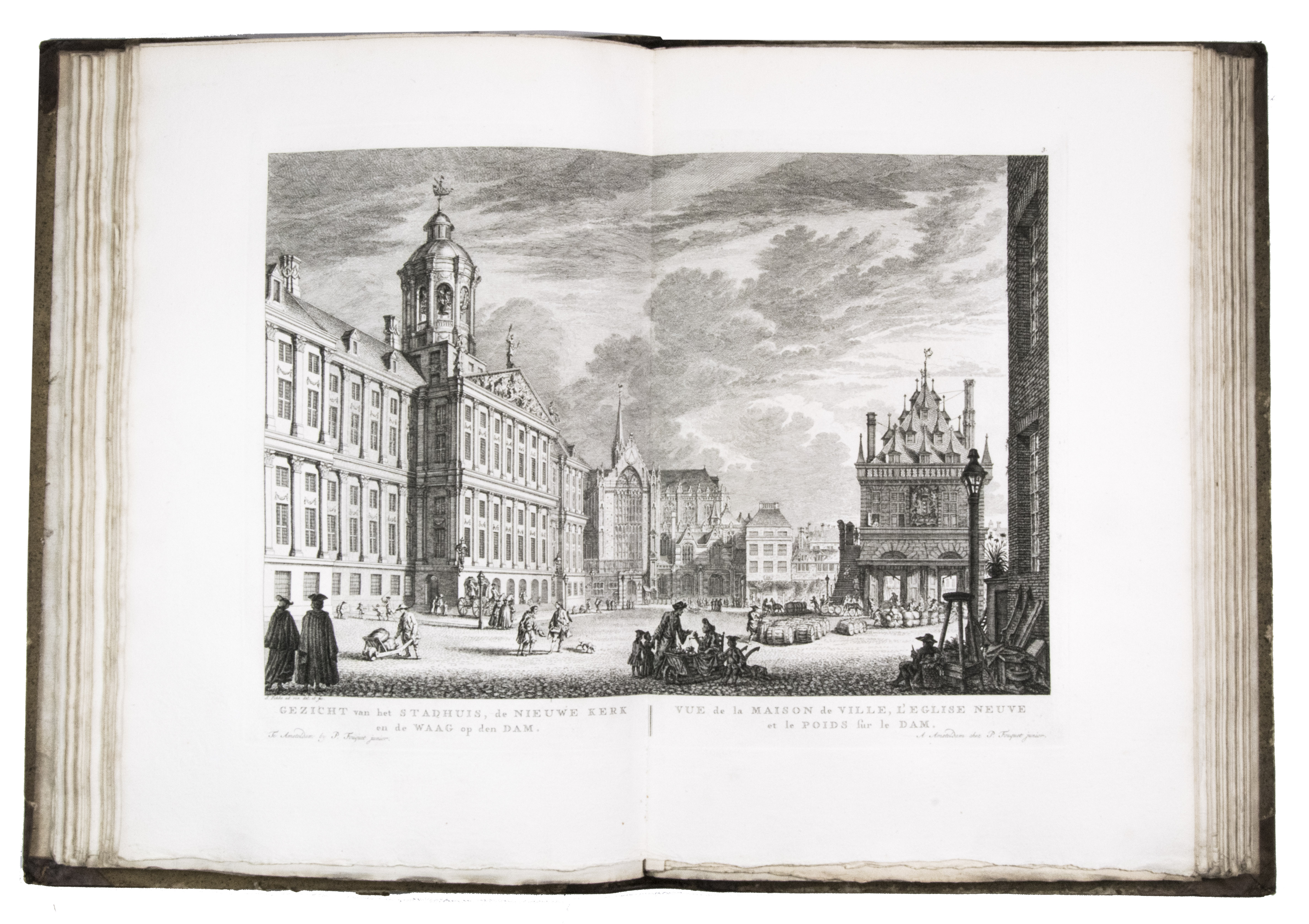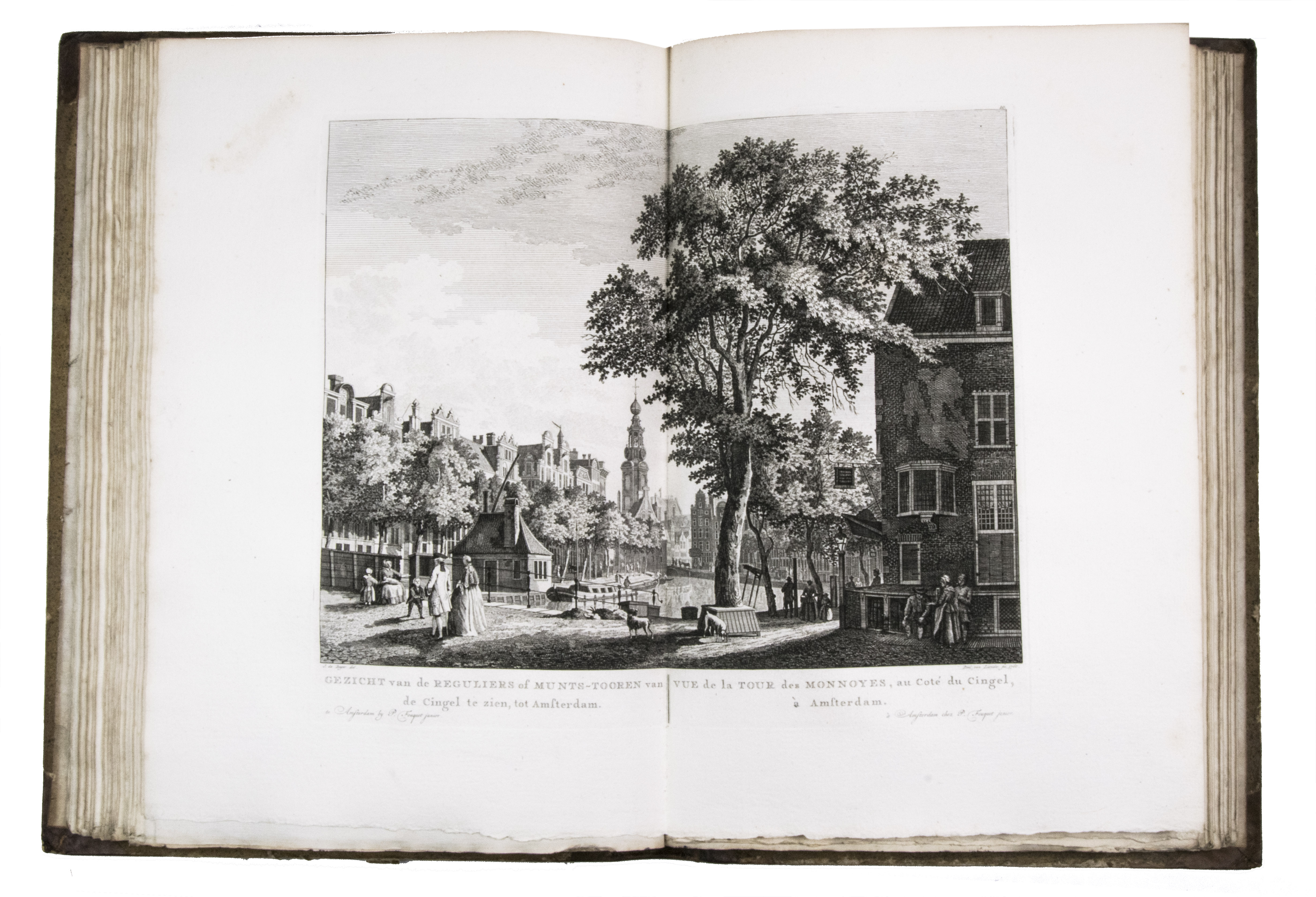 Shortly after 1778 the plates were issued in oblong format with a map of Amsterdam and a contents, but without any text, under the title Afbeeldingen van de wyd-vermaarde koopstad Amsterdam / Recueil des édifices les plus considerables ... A second edition of the present work was printed in 1805 by Evert Maaskamp. However, the plates of the first edition are more beautiful. There certainly is no better source than Fouquet's atlas to get a clear, lively, and even exiting picture of Amsterdam and its inhabitants during the 18th century.