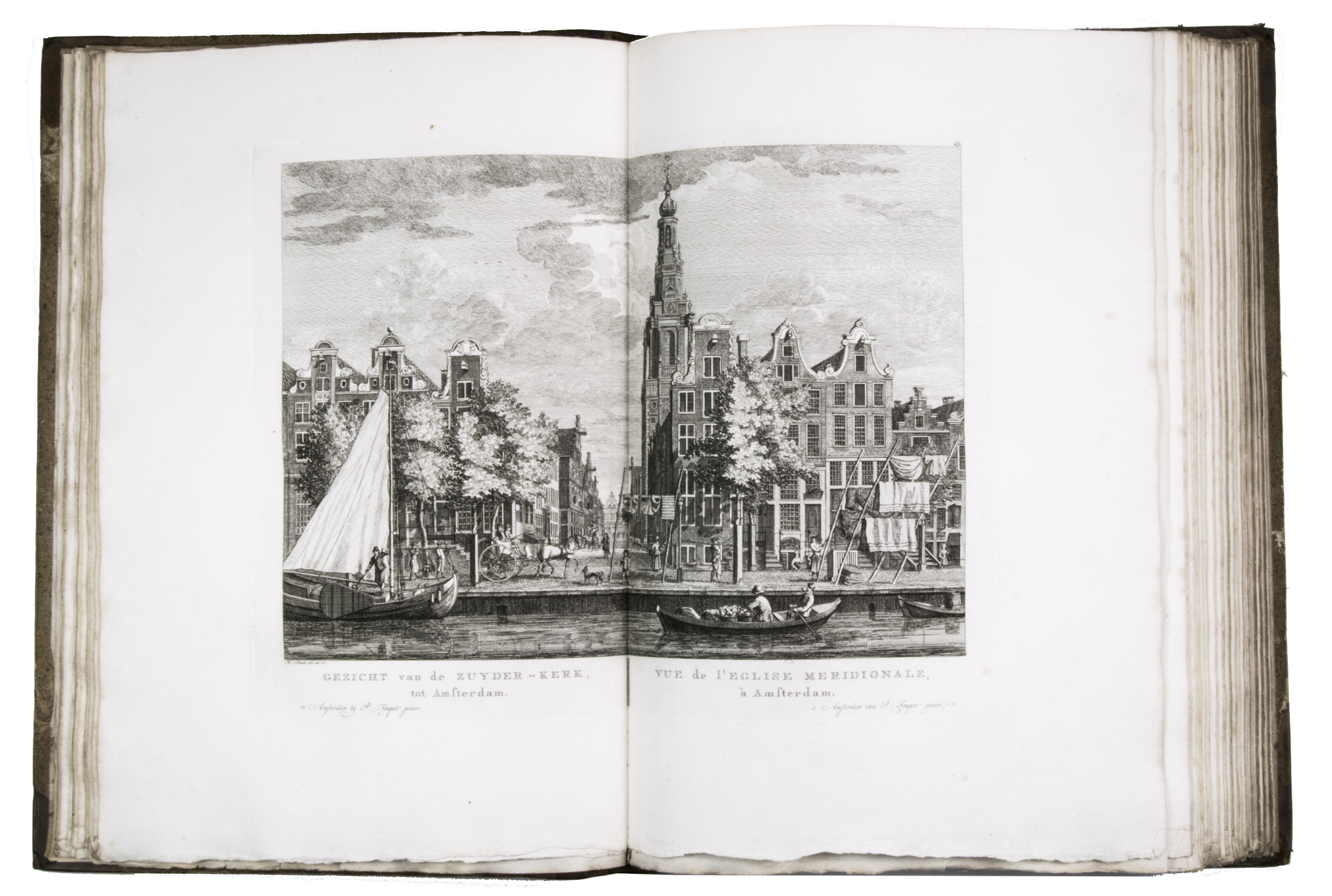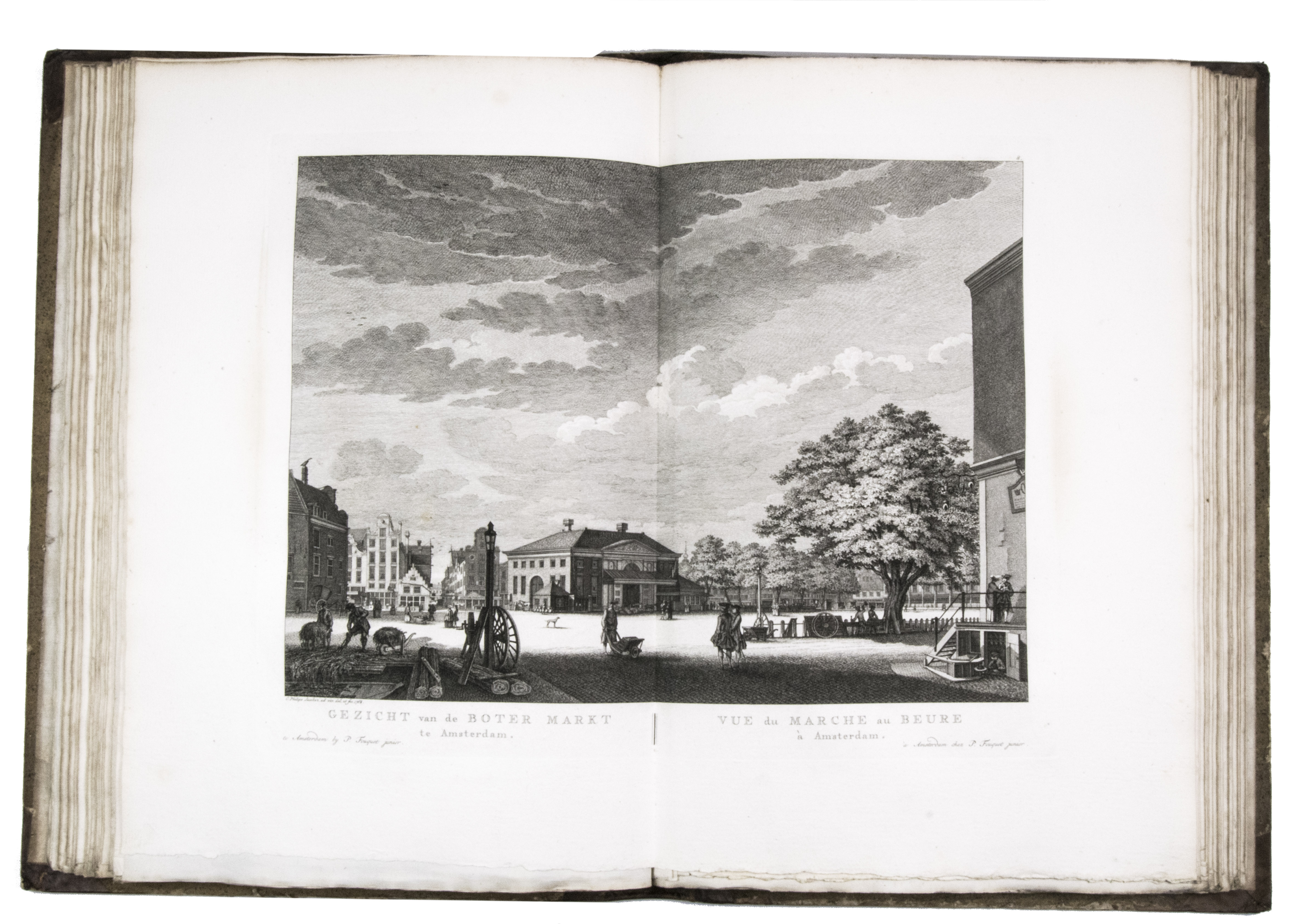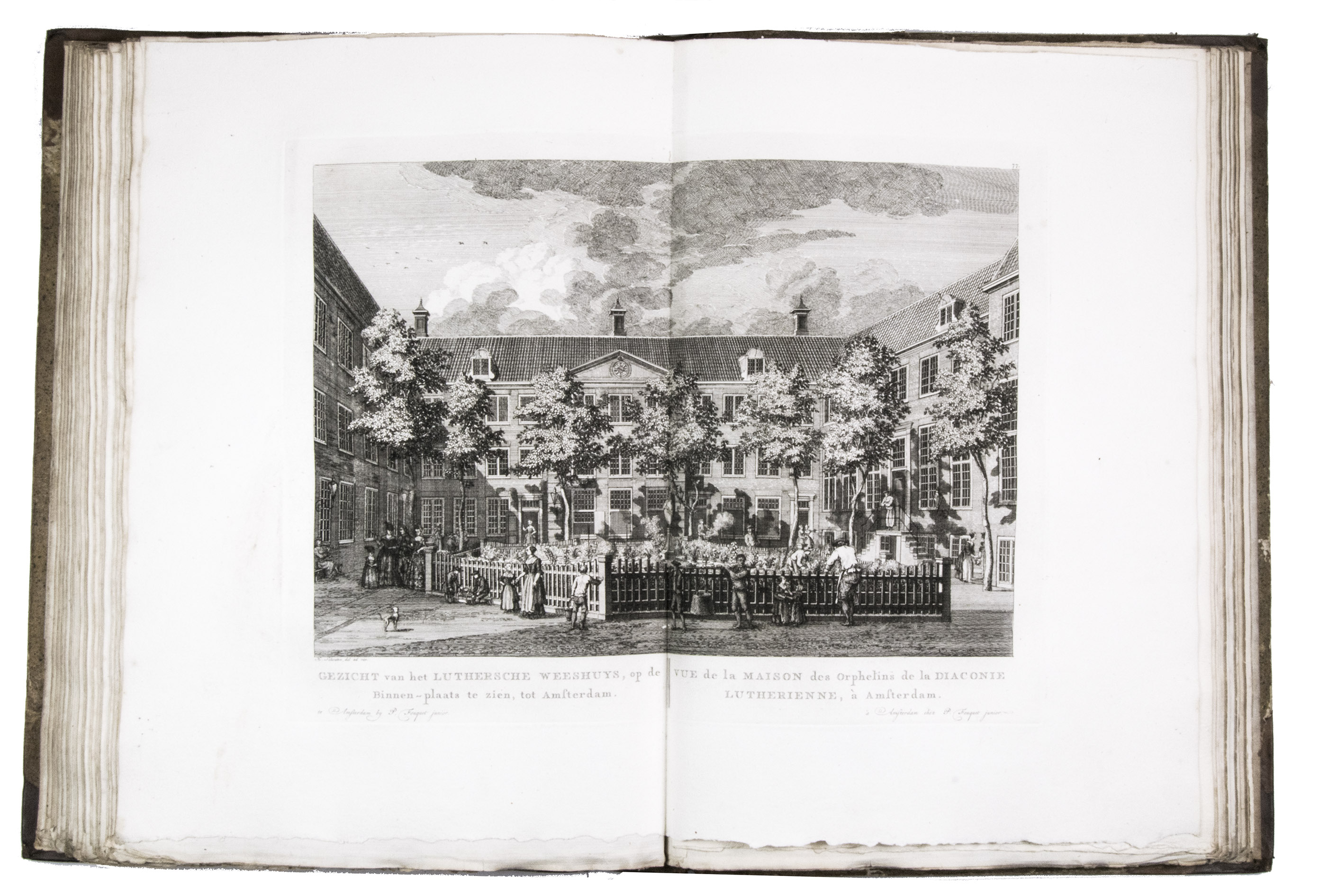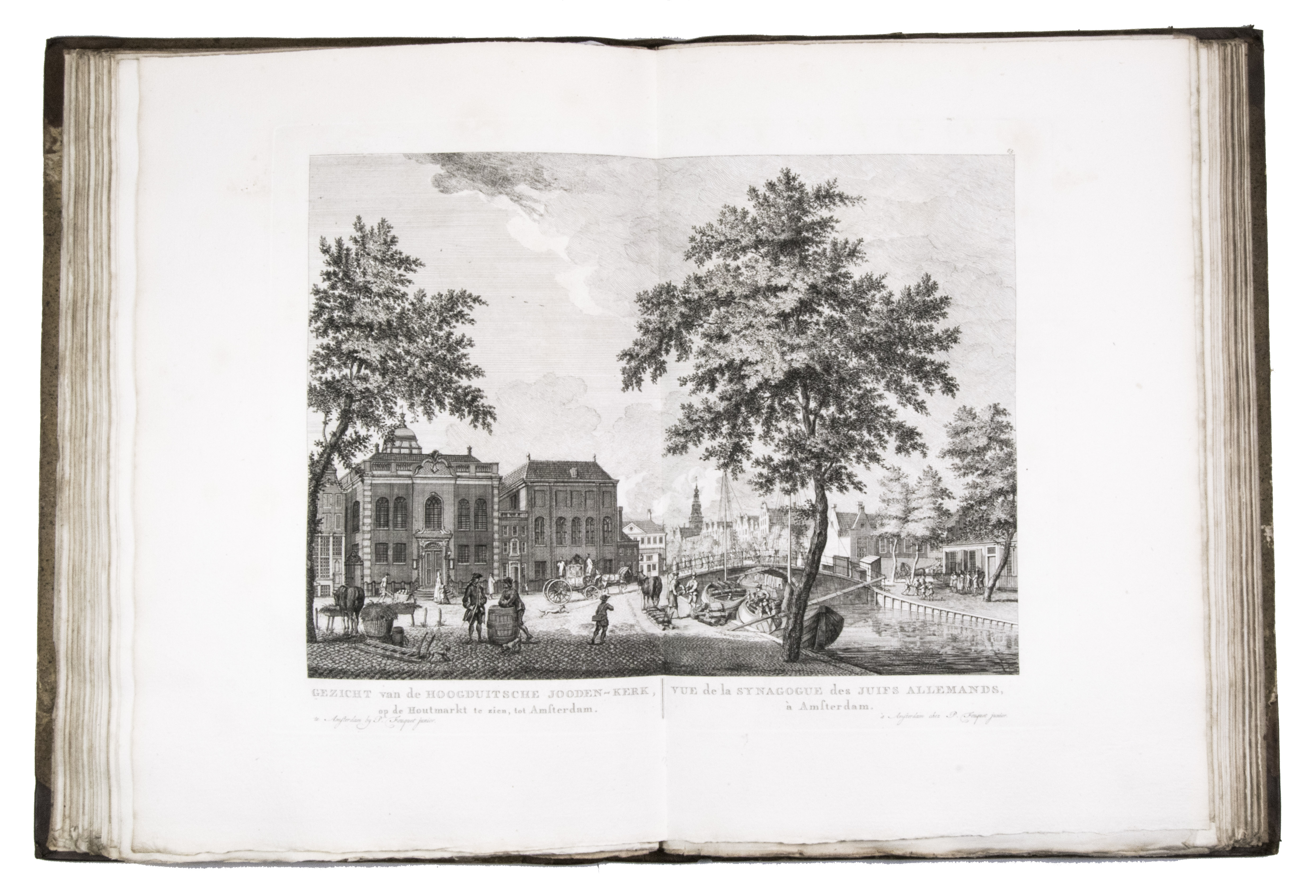 Shortly after 1778 the plates were issued in oblong format with a map of Amsterdam and a contents, but without any text, under the title Afbeeldingen van de wyd-vermaarde koopstad Amsterdam / Recueil des édifices les plus considerables ... A second edition of the present work was printed in 1805 by Evert Maaskamp. However, the plates of the first edition are more beautiful. There certainly is no better source than Fouquet's atlas to get a clear, lively, and even exiting picture of Amsterdam and its inhabitants during the 18th century.