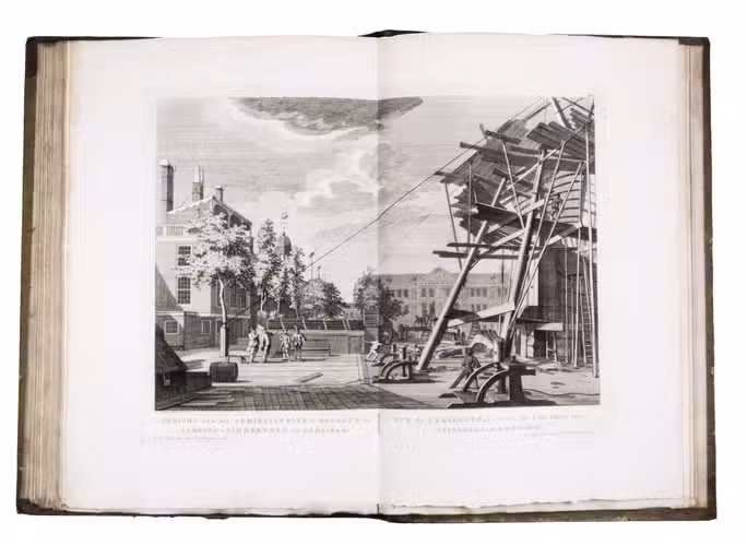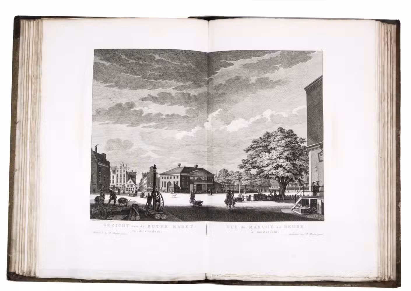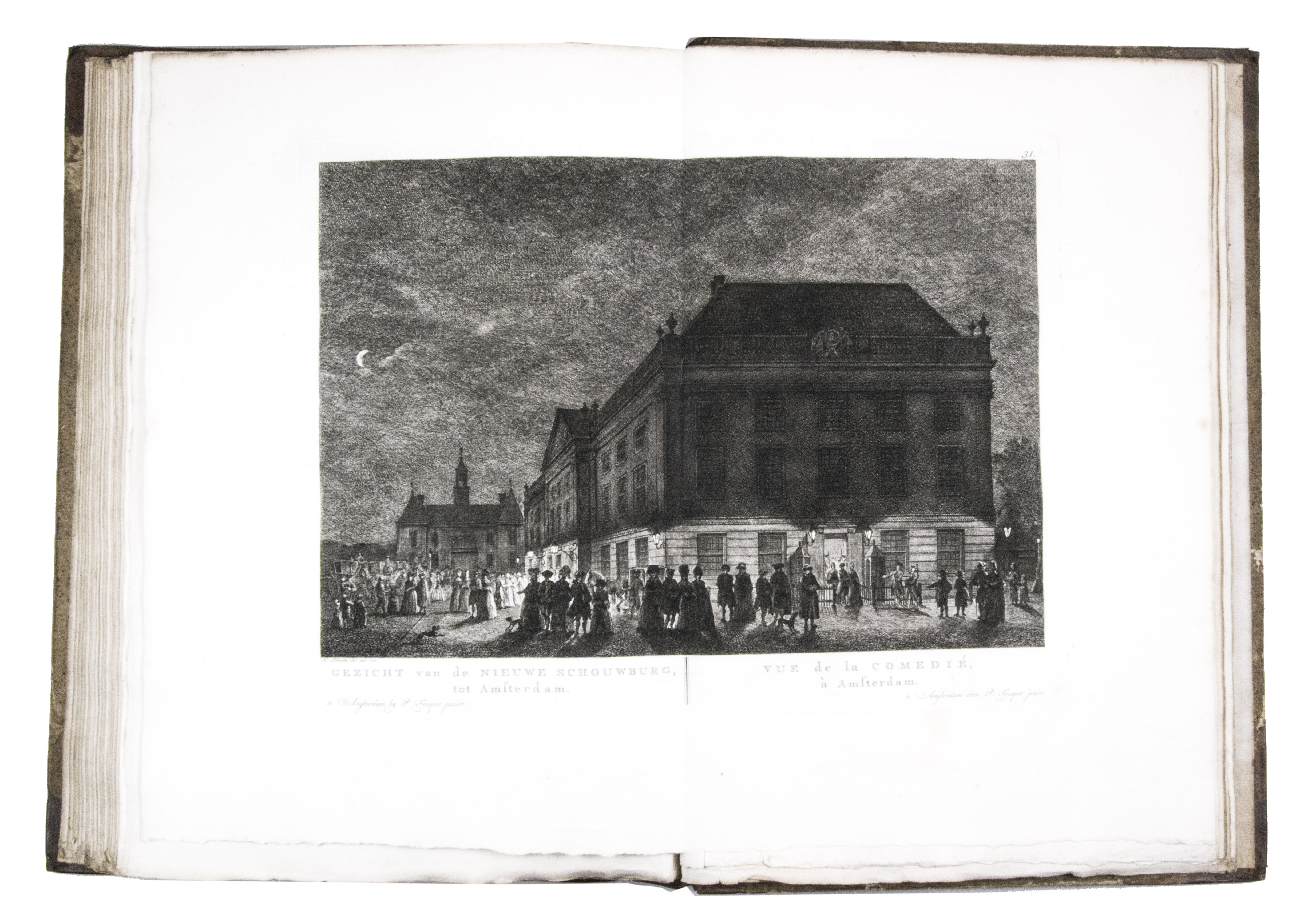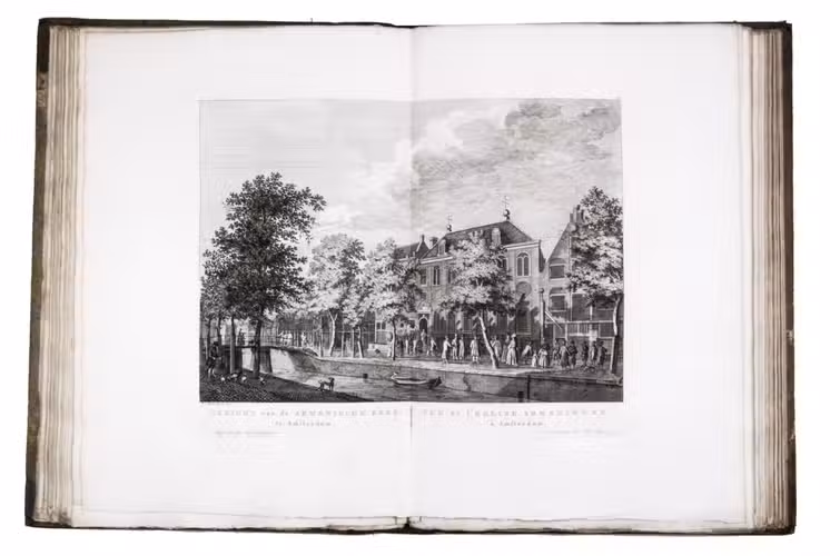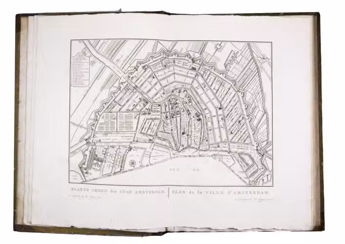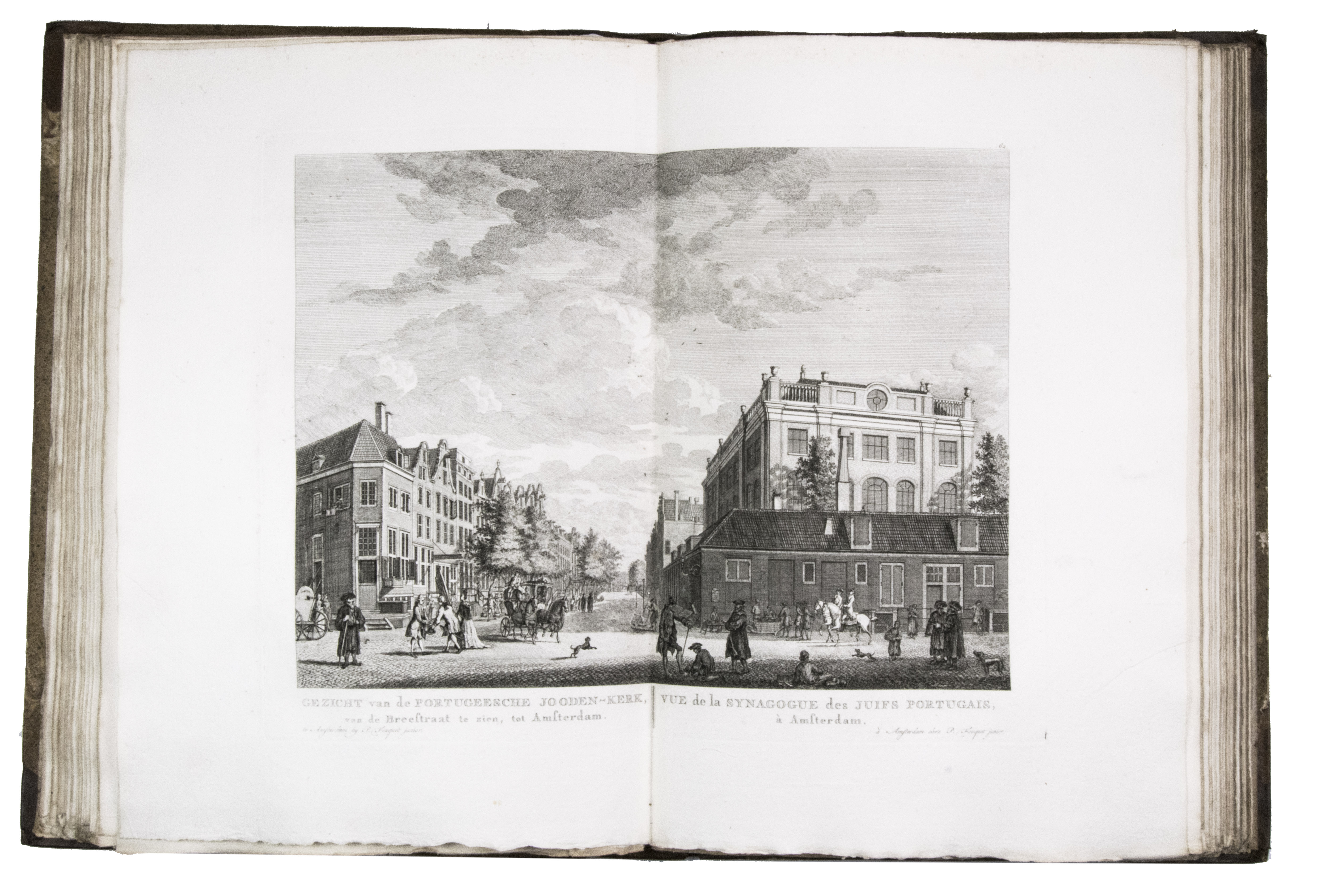Shortly after 1778 the plates were issued in oblong format with a map of Amsterdam and a contents, but without any text, under the title Afbeeldingen van de wyd-vermaarde koopstad Amsterdam / Recueil des édifices les plus considerables ... A second edition of the present work was printed in 1805 by Evert Maaskamp. However, the plates of the first edition are more beautiful. There certainly is no better source than Fouquet's atlas to get a clear, lively, and even exiting picture of Amsterdam and its inhabitants during the 18th century.