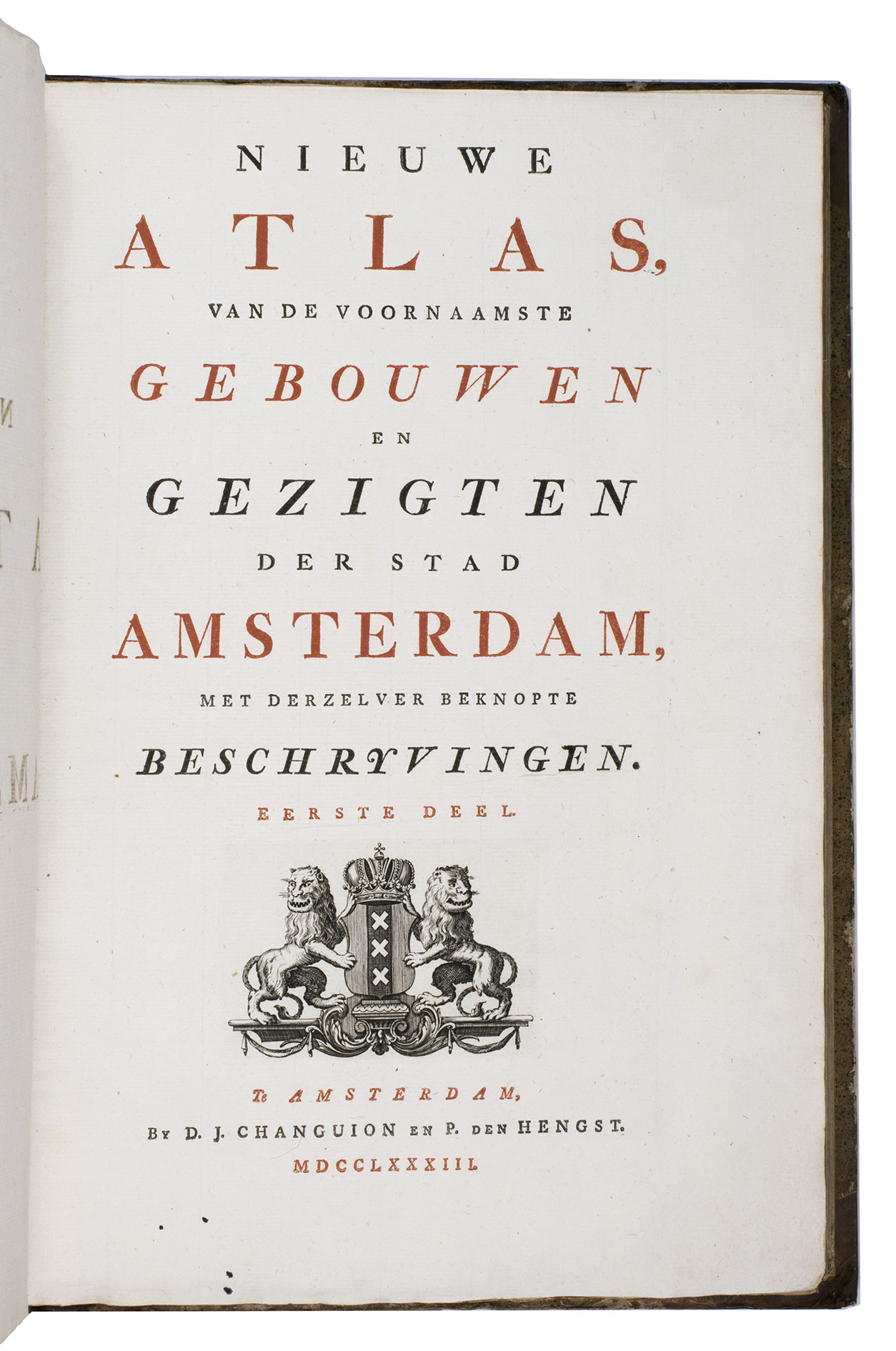 Nieuwe atlas van de voornaamste gebouwen en gezigten der stad Amsterdam, met derzelver beknopte beschryvingen.