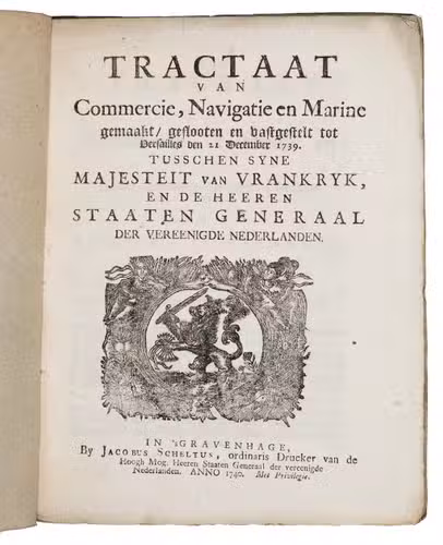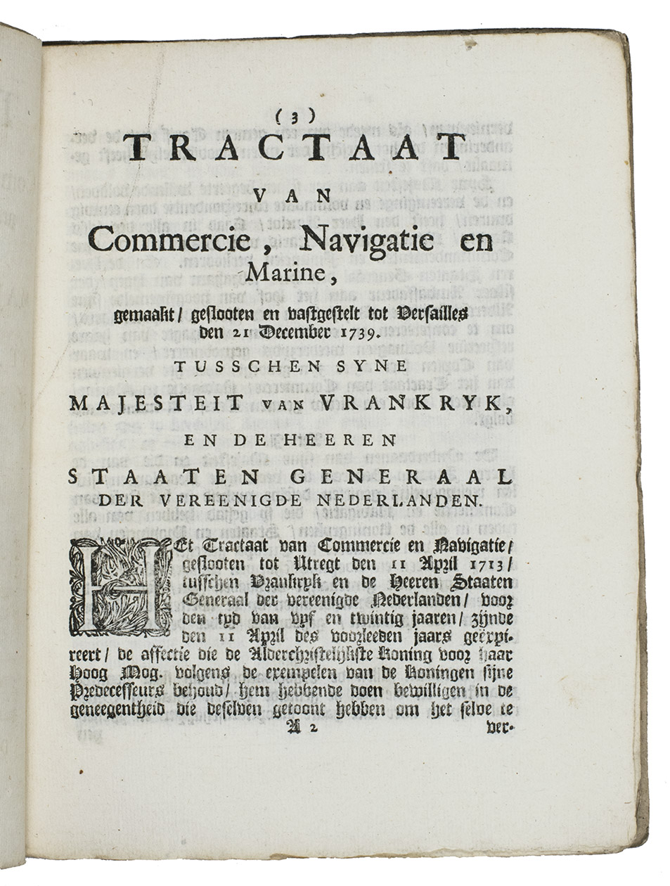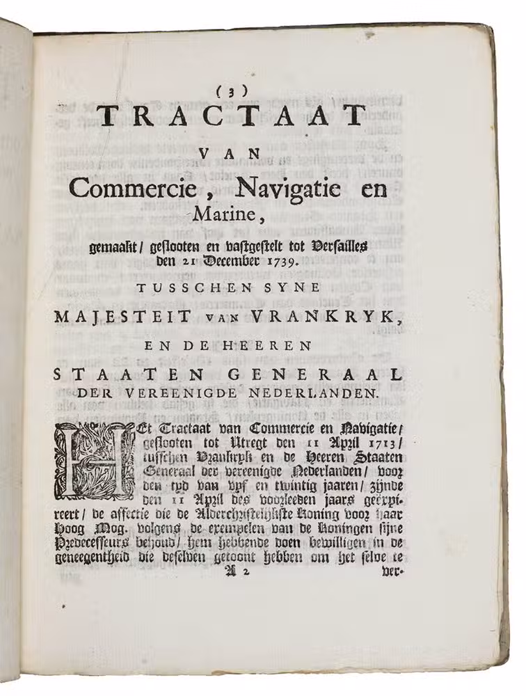Tractaat van commercie, navigatie en marine gemaakt, geslooten en vastgestelt to Versailles den 21 December 1739. Tusschen Syne Majesteit van Vrankryk, en de Heeren Staaten Generaal der Vereenigde Nederlanden.