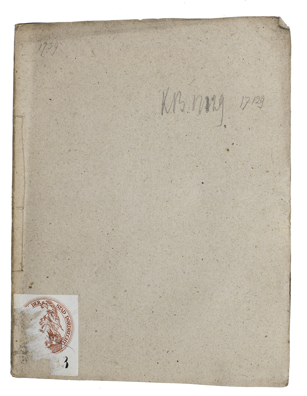 With the bookplate of the city library of Dordrecht on the paper wrapper (partly gone). Edges a little frayed, otherwise in good condition. Knuttel, 17129; Roussel, Recueil hist., 14, pp. 447-483.