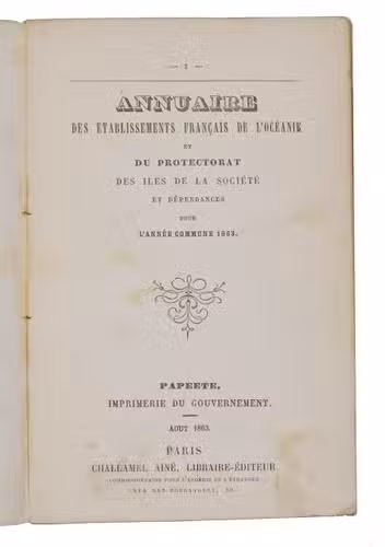 Annuaire des établissements français de l'Océanie et du Protectorat des Iles de la Société et dépendances pour l'année commune 1863.