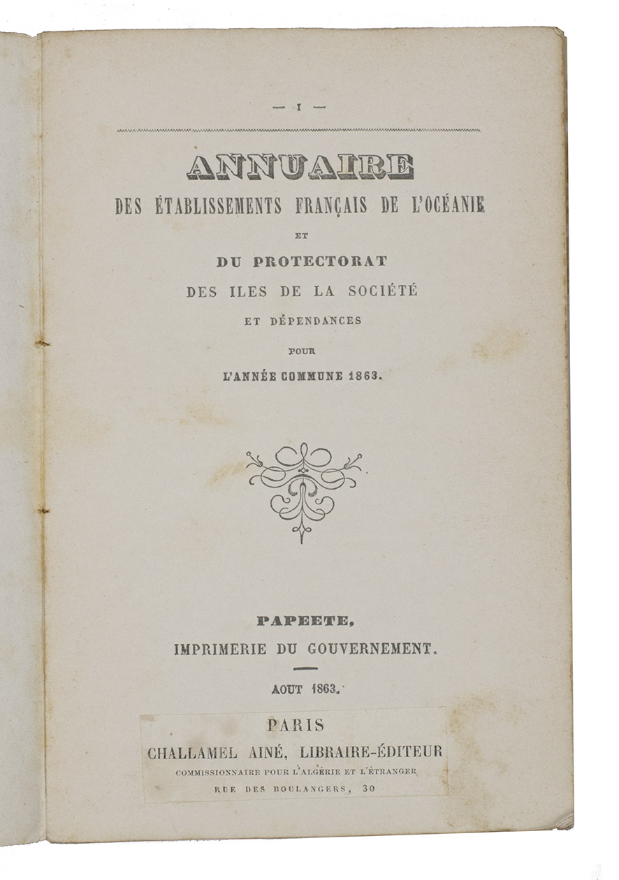 Papeete, Imprimerie du Gouvernement, August 1863.