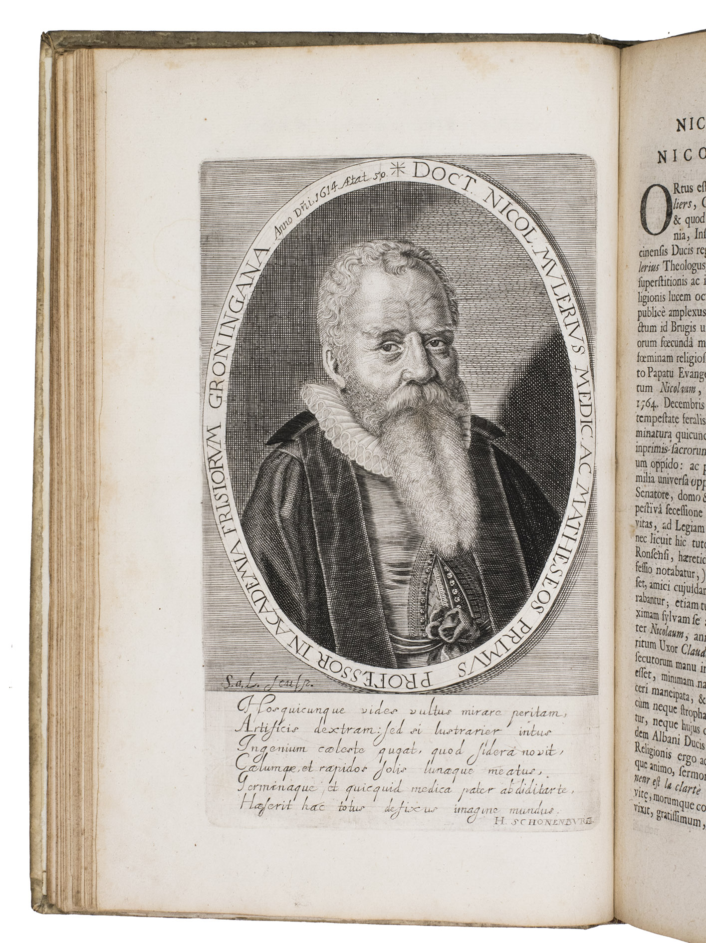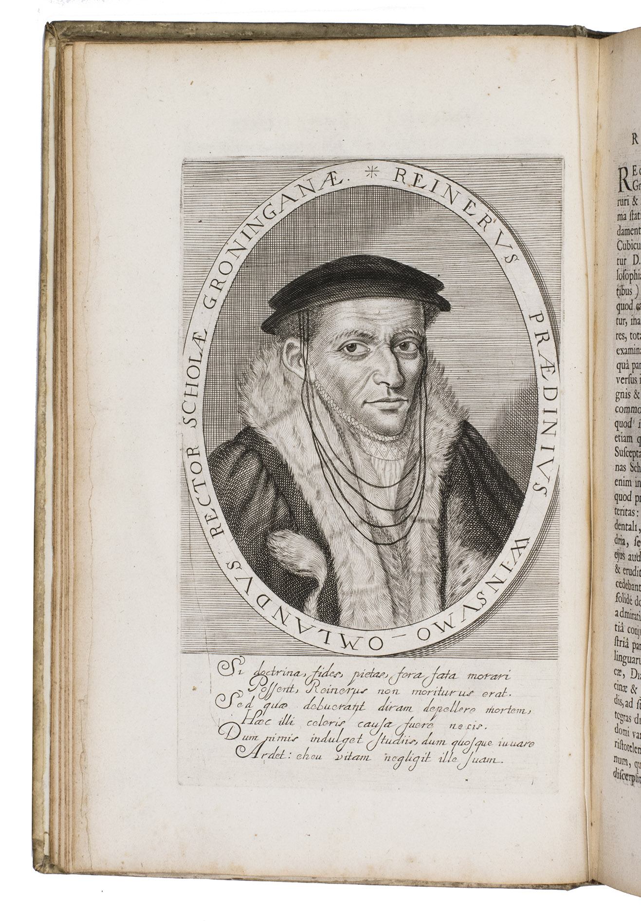 Groningen, Johannes Nicolai (colophon: Hindrick Lussinck), 1654. Small folio (ca. 29 x 19 cm). With an engraved title page, and 31 full-page engraved portraits. Contemporary blind-tooled vellum. [4], 225, [8], [1 blank] pp.