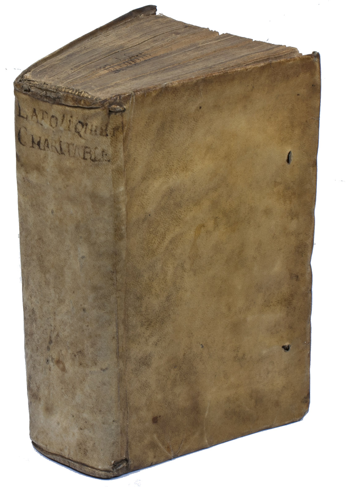 Paris, Jean Gesselin, 1634. 8vo. With engraved title-page. Contemporary limp sheepskin parchment. [22], [2 blank], “718”[=710], [2], 24 pp.