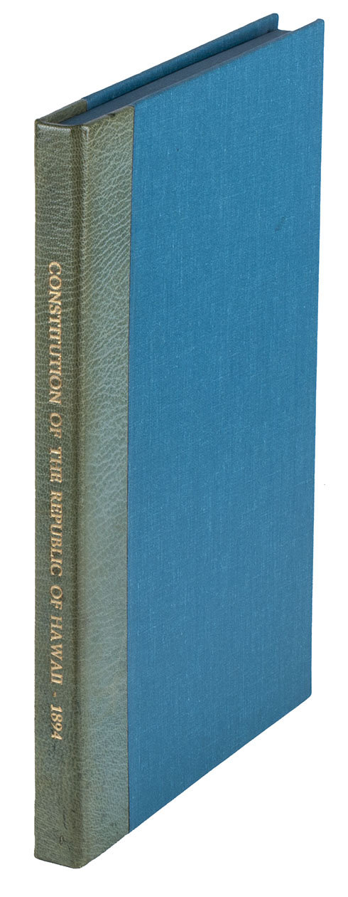 With a library stamp on front wrapper, the spine of the wrapper reinforced. A very good copy. Forbes 4569 (55-page issue); Streeter 3766 (55-page issue); cf. A.F. Lee, The Hawaii state constitution: a reference guide (1993), p. 5.